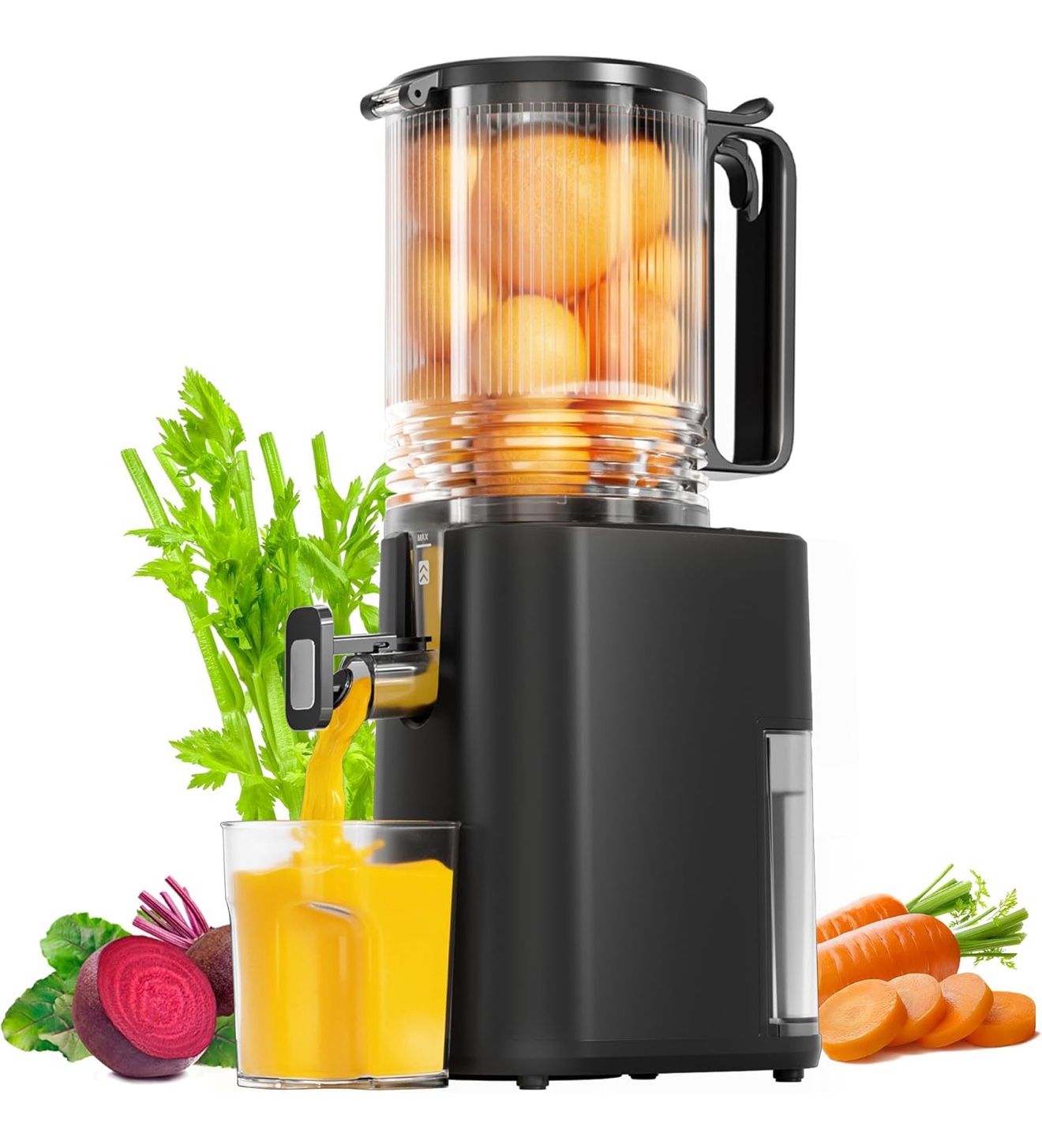 Cold Press Juicer, 5.5inch Wide Feed Chute Juicer Machine, Slow Masticating Juicer for Whole Vegetables & Fruits, Black