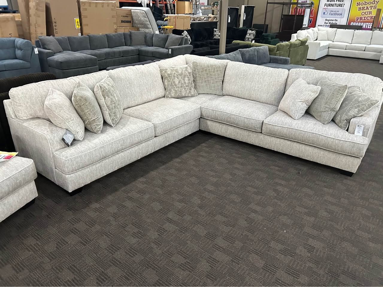 130" x 130" Turn your living room into your favorite place to relax! This spacious, cozy sectional offers deep seating, plush cushions, and a clean, modern look that fits any home. ✅ Available in any color or fabric ✅ Choose your layout – L-shape, U-shape, or custom fit for your space ✅ Add matching ottoman or accent pillows ✅ Zero-down financing available ✅ Quick delivery options