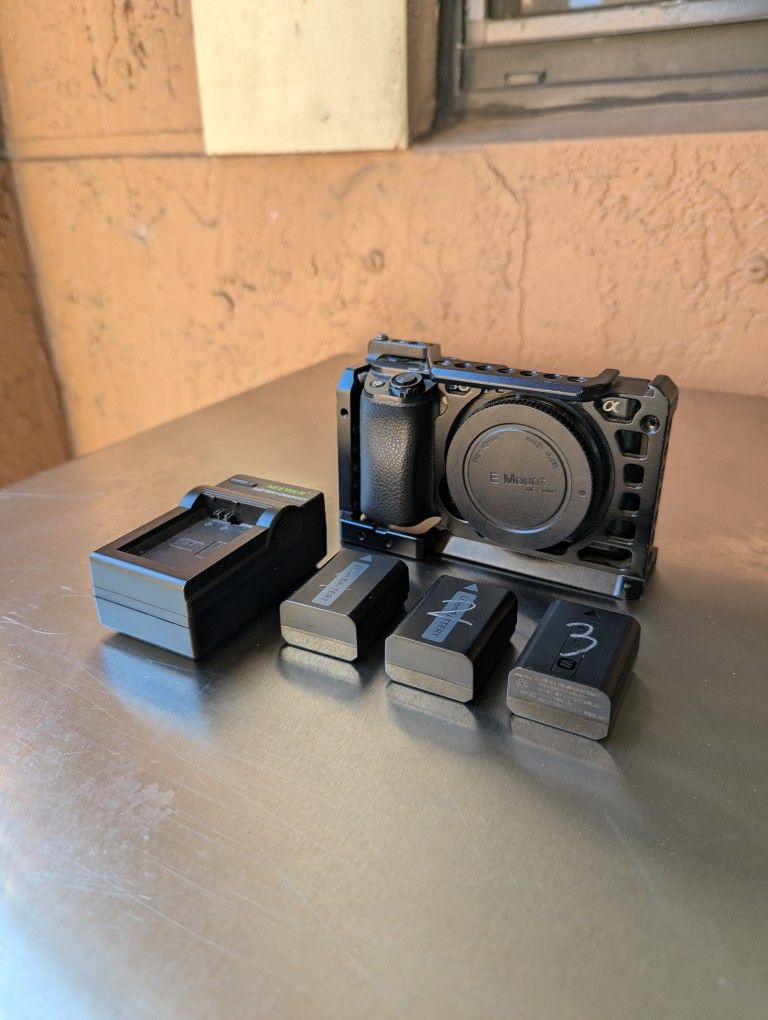 Good condition well cared for Sony a6100 mirrorless camera. Includes 3 batteries, charger, and a smallrig cage. Amazing camera for anyone looking to dive deeper into photography or videography! I used it for nature and landscape and it served me very well! Also a great camera for a HQ stream setup (4k30 or 120fps at 1080). I added some photos I've taken with the camera on various lenses. The images are processed in the way that I enjoy. They're not raw images. So keep that in mind. I included my IG if you want to peep more examples of the pictures I've taken with this camera. Happy holidays!