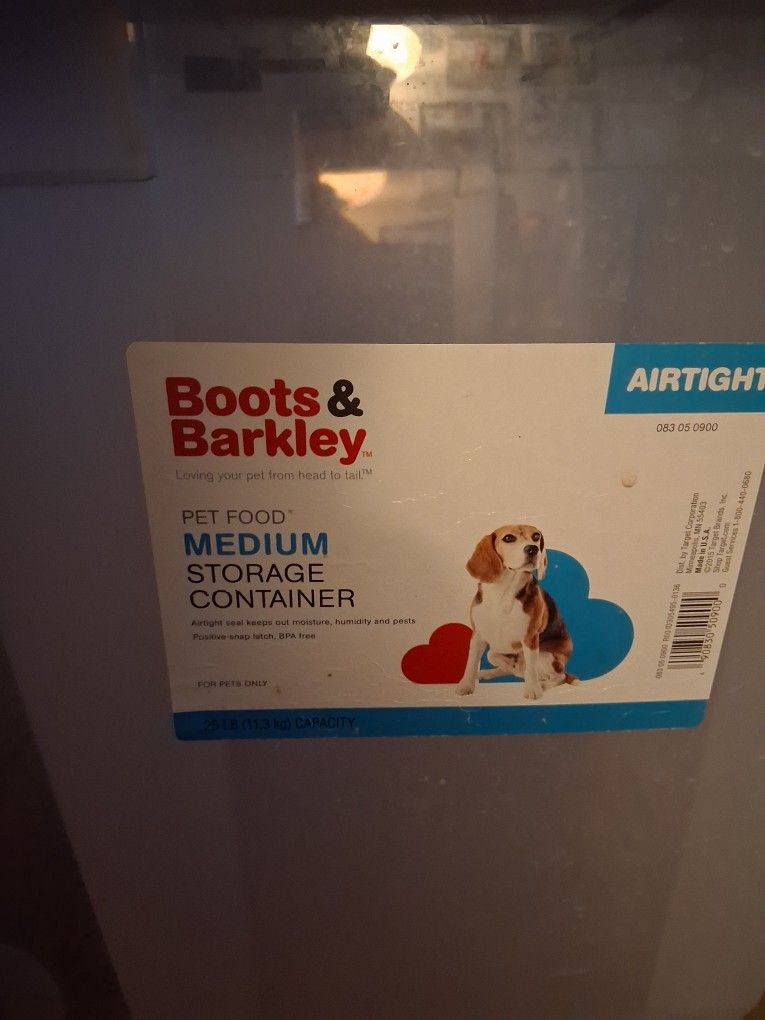 Made for pet food storage i just used it as a regular storage container of various items. Still works great. Could use a good cleaning. Will wipe down upon sale.