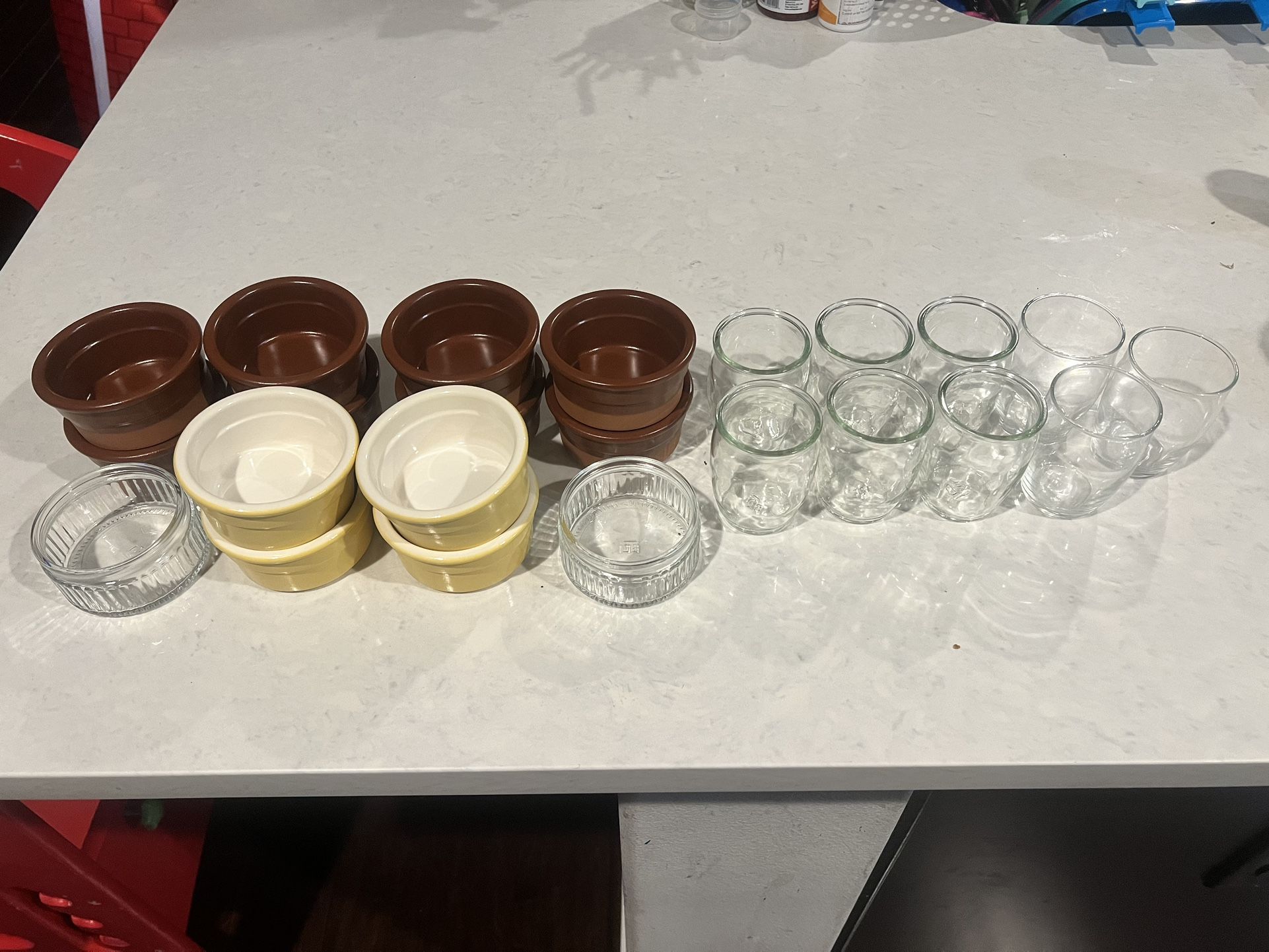 Ceramic Bowls And Small Glass Cups