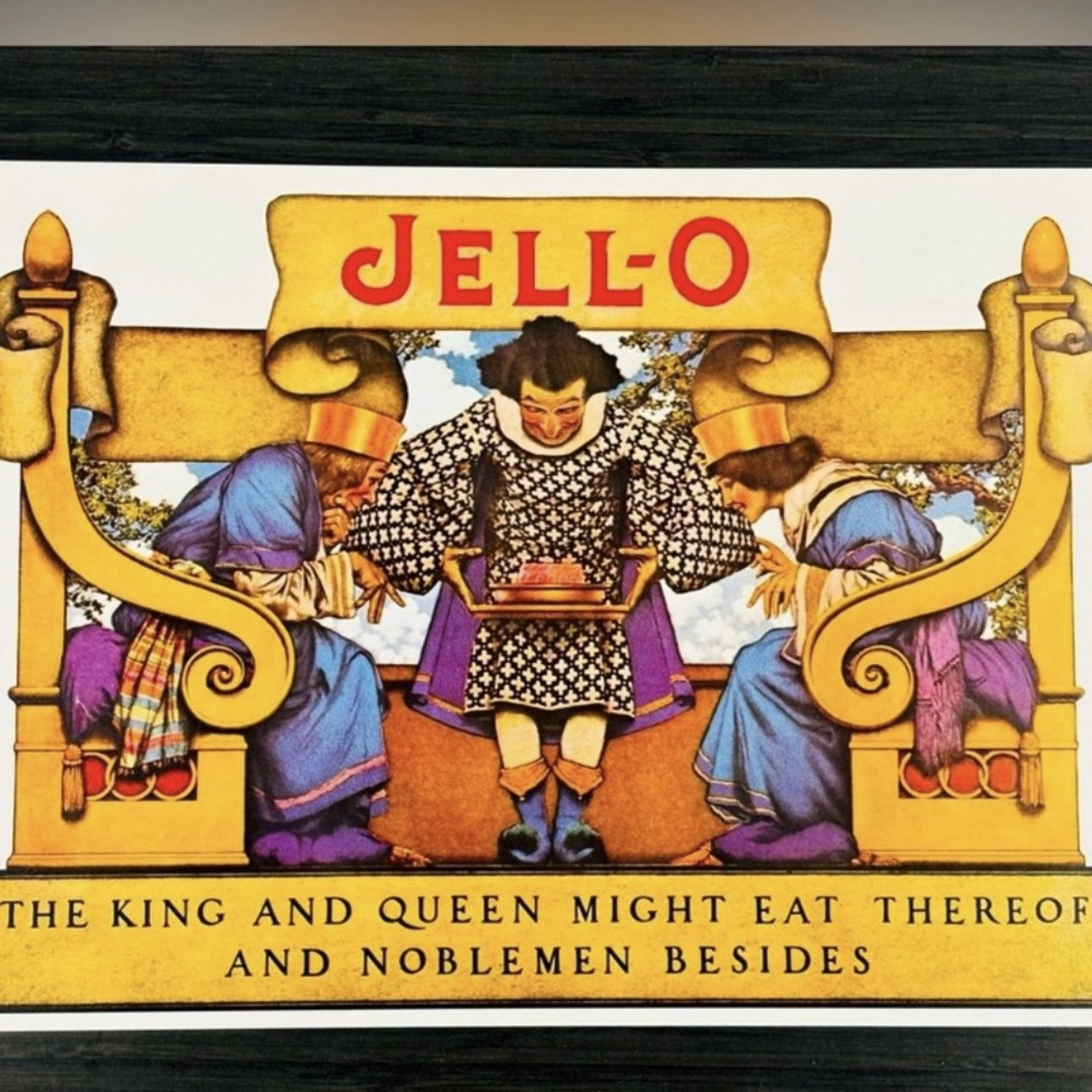 A keen interest in the arts and in design was present for our Great-Grandmother Floro, an inspiration that was inherited in the family. This piece has been in a cabinet in our house for decades. It is originally from the 1970’s. APPROXIMATE SIZE: 11 1/4” x 15 1/4” JELLO JELL-O “The King & Queen Might Eat Thereof & Noblemen Besides” Original Vintage Art Print Poster Maxfield Parrish Painter Illustrator Art Deco Nouveau Artist Antique Collectible Ephemera INTERESTS: Neoclassical, Allegory Allegorical Motifs, Illustrations, Advertising Maxfield Parrish is known for his distinctive saturated hues and idealized neo-classical imagery. His career spanned fifty years and was wildly successful. In keeping with Eclectic Decor, Architectural Digest, Period Interior Design, Classic, Formal, Traditional, Country Estate, Shabby Chic, Art Deco/Nouveau, Antique-Friendly Spaces, Arts and Crafts Era, Kitsch, Whimsey, Victorian, MCM Mid Century Modern, Mission, Hollywood Regency, Boho/Bohemian, Modern/Contemporary/Minimalist, Farm/Cabin/Lodge, etc... For an Impeccably Tasteful Home. THIS WOULD BE A DREAMY GIFT! It could be nicely matted and framed, or reserved in a collection for posterity. P0014