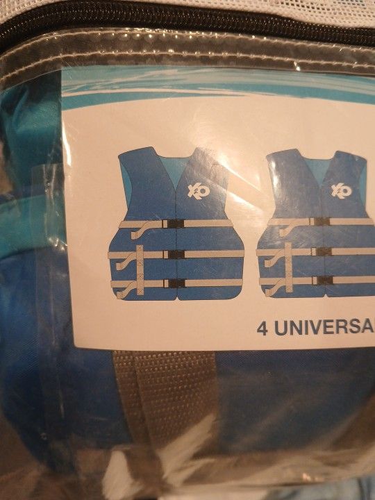 Set of 4 life jackets and 1 boat coshion