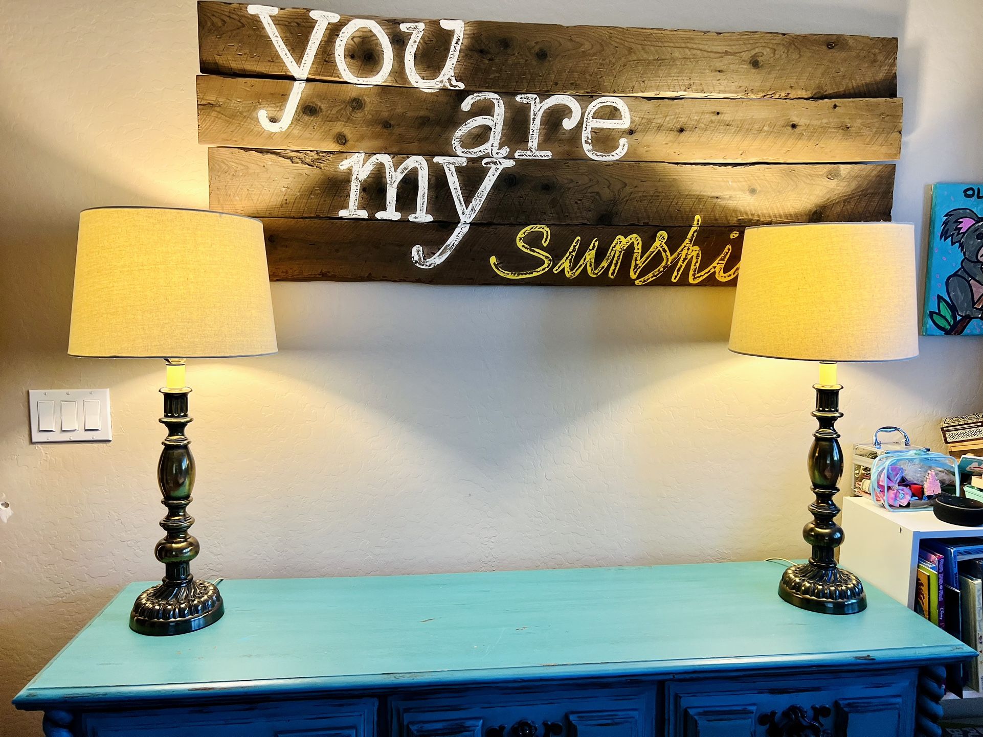 Heavy duty antique brass lamps. Both Measure 7 inches wide at the base by 30 inches tall. Includes shades. Excellent condition. Non-smoking home. $25 each or $40 for both.