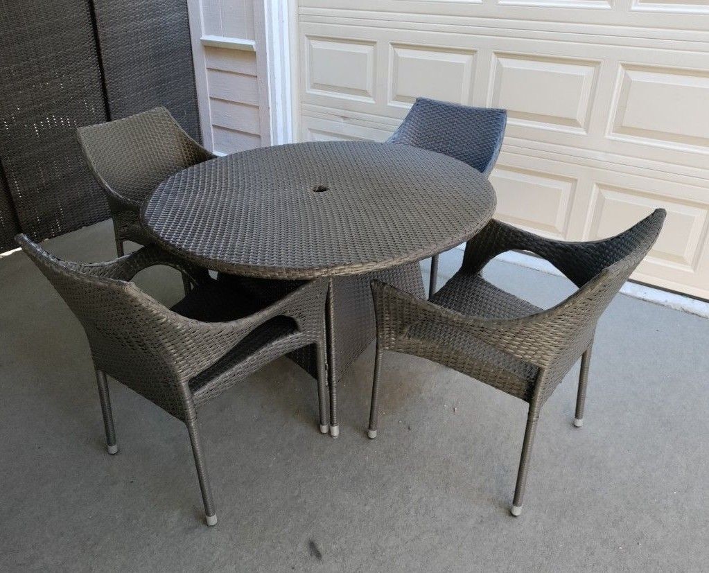 Outdoor patio wicker table with 4 chairs new table has hole for umbrella measures 48 inches diameter and 30 tall $350 firm no less pickup