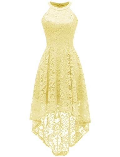 Dressystar 0028 Halter Floral Lace Cocktail Party Dress Hi-Lo Bridesmaid Dress White XS