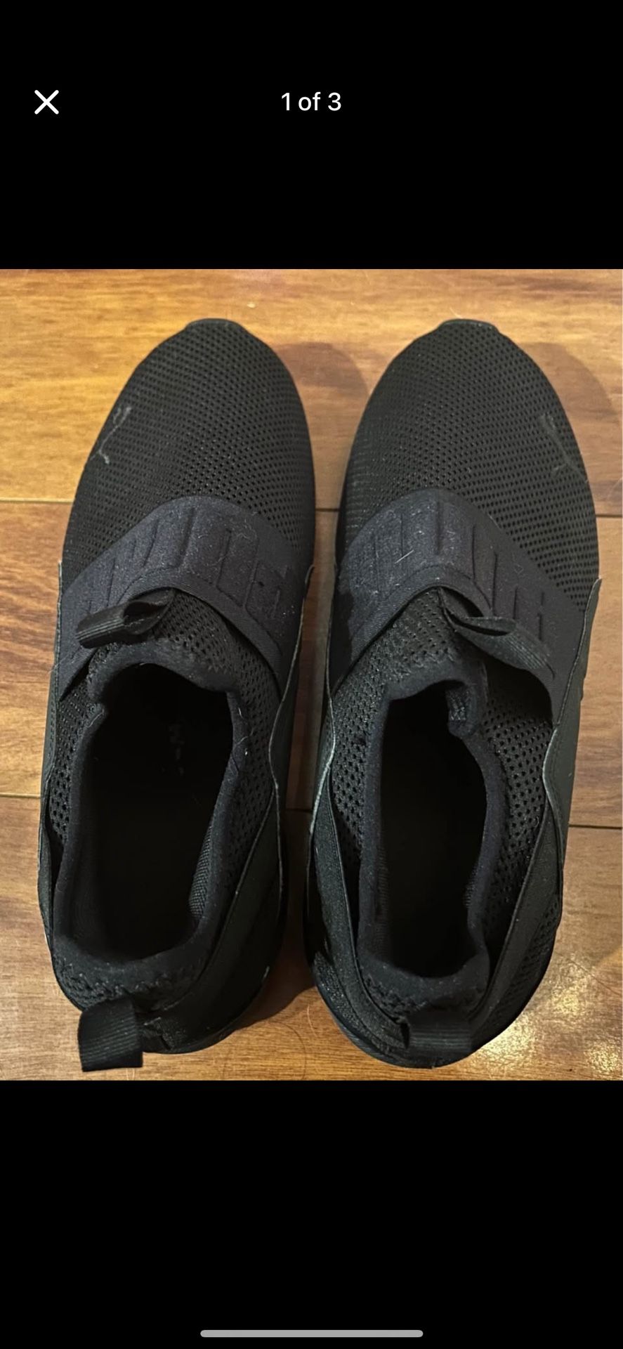 Black Puma Running Sneakers no laces Size 8.5 Men’s Worn once In excellent condition no rips, holes Smoke free home Pick up only