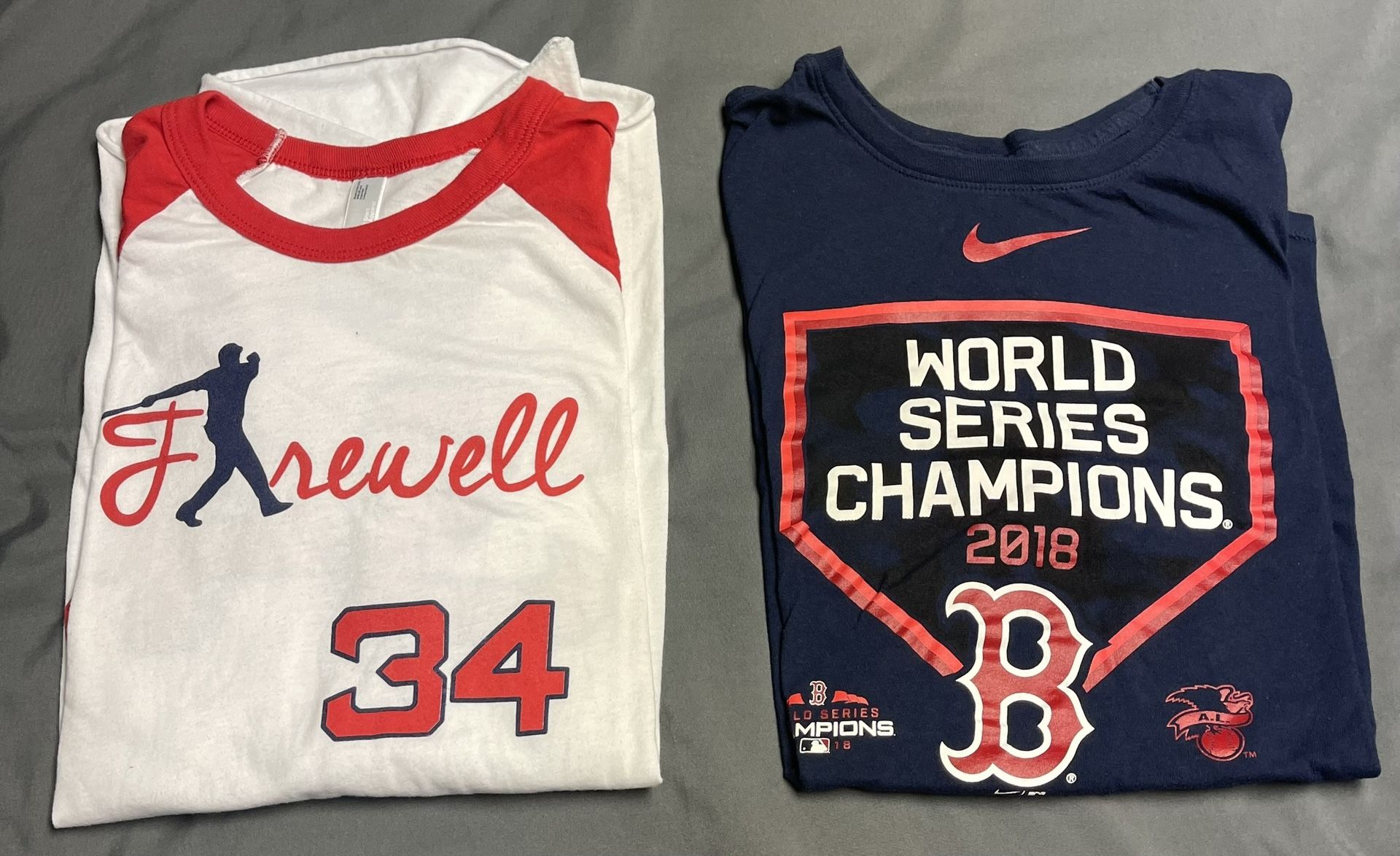Men’s Boston Red Sox Shirts, David Ortiz 3/4 Henley shirt and 2018 Boston Red Sox World Series Championship Shirt. I’m not looking for trades. Non smoker and non pet owner. Don’t ask for my phone number, iMessage or me to email the photos to someone else. I’ll report you.
