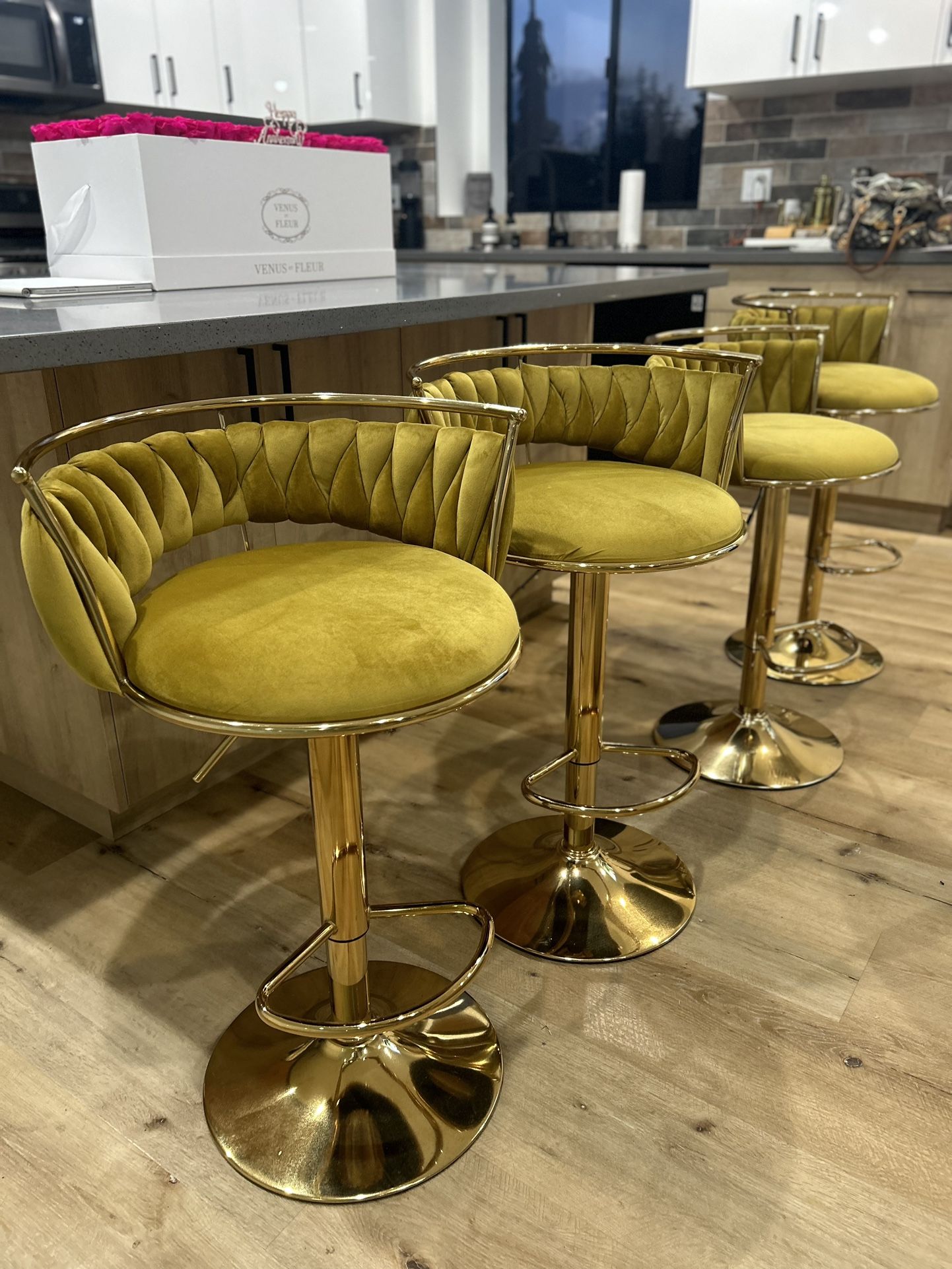 4 brand new velvet barstools ready for pickup! Excellent condition! Selling because we are redoing home.