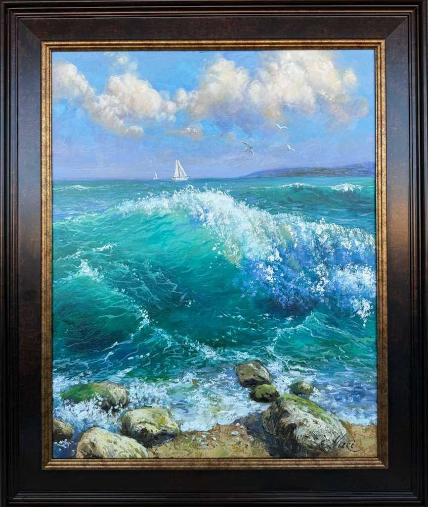 Framed Oil Painting “Song of a tide ” By Nuri Alieva , ocean Artwork sea
