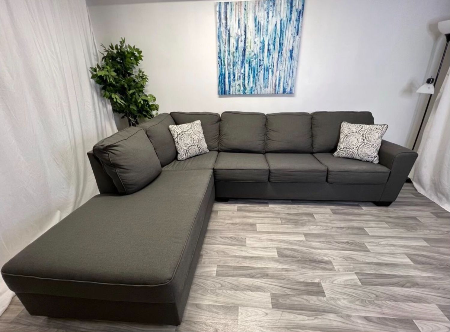 An Ashley sectional sofa in excellent condition is available for sale. This comfortable and stylish couch is perfect for any living room. Don't miss out on this opportunity to own a quality piece of furniture. ππ» π€© π DELIVERY AVAILABLE π Dimensions: 113x90 inches β No stains β No rips β Smoke Free β Covers Washable CONTACT ME FOR MORE DETAILS. THANKS! π Sofa, couch, sectional, sleeper, chaise, seat, sofa bed, futon, ottoman, ikea, jeromes, ashley furniture, living room, living spaces, west elm, crate and barrel, pottery barn