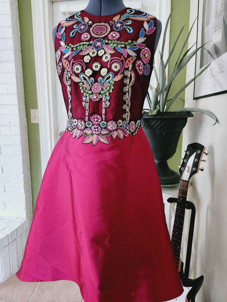 NWT Designer Marchesa Notte Fuchsia Beaded Hi-Lo Dress size 6