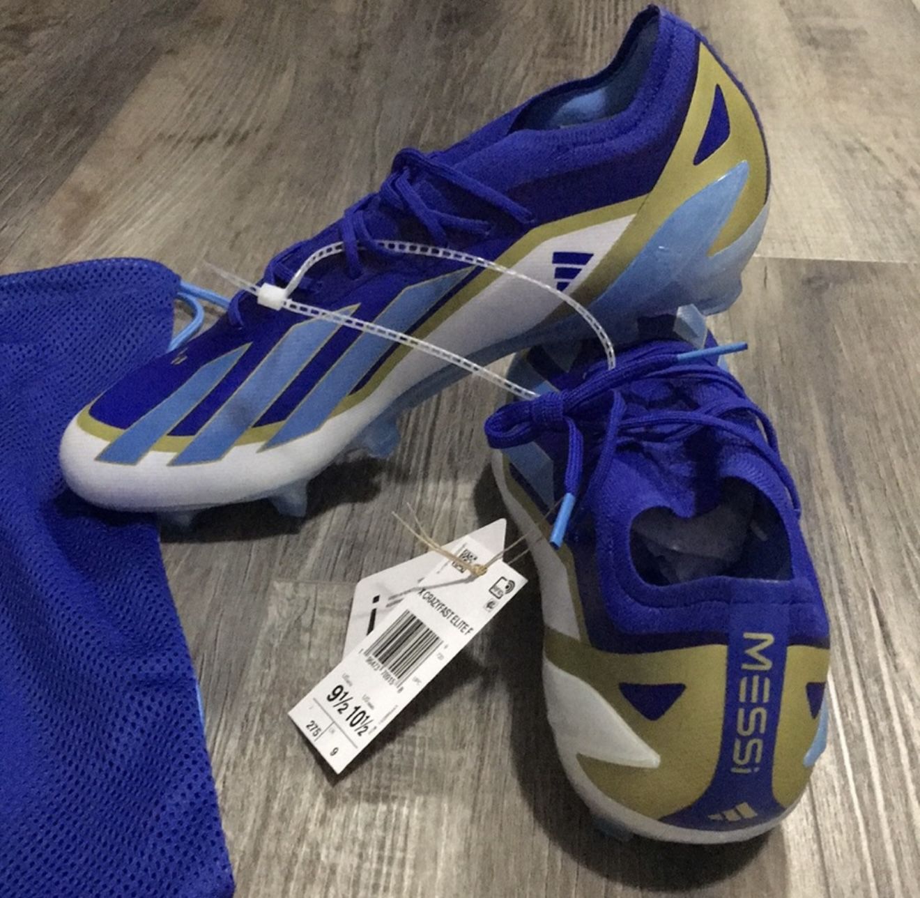 New Messi Blue Soccer Cleats with Drawstring Bag Size 9.5