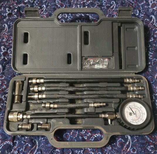 Hi everyone, just clearing out some things from my barn to make room for things I do need to keep/store. I don't use and have no foreseeable need for this cylinder head compression test kit anytime soon, but perhaps you do? π. I don't believe we ever even used it, it's a little dusty from being stored but looks to be all intact and in nice, original shape. I think we paid like $40 bucks for the thing when we bought it, so figure maybe $15 bucks is a fair asking price? Anyways, let me know if you'd like to get it and we can meet up. Thanks!