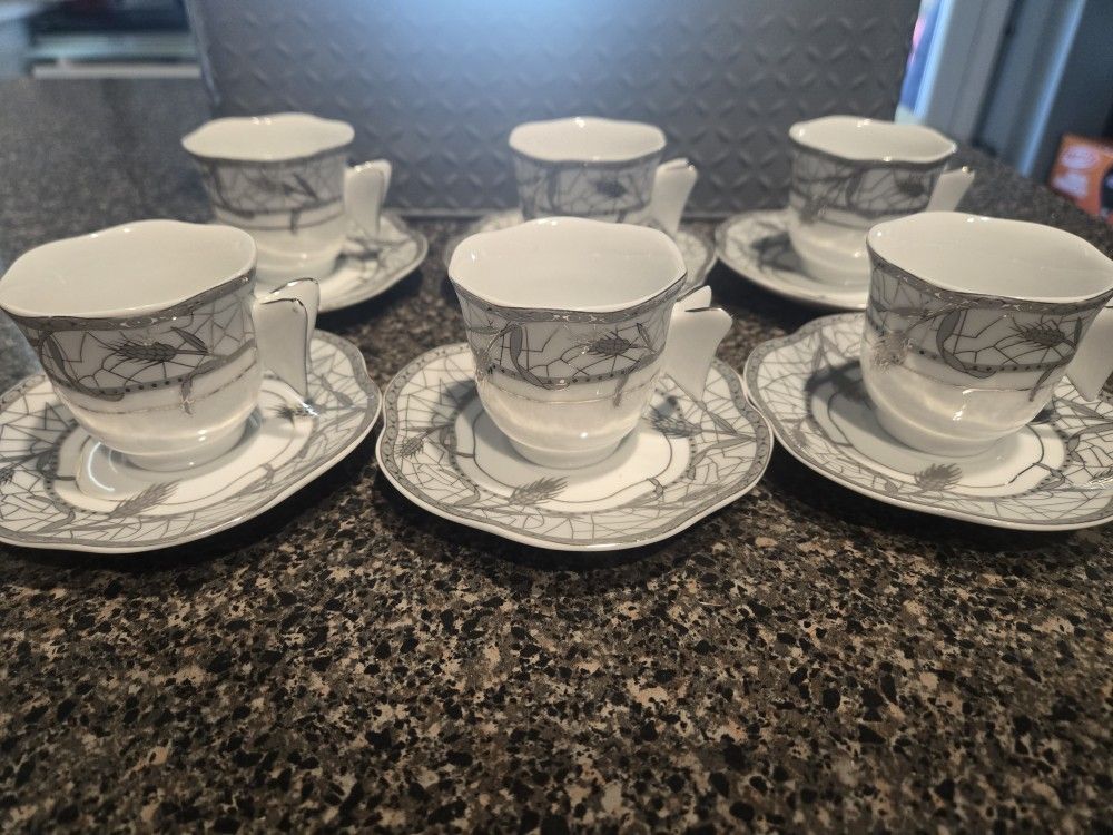 For sale is a stunning white porcelain set with intricate silver details. Never used and in great condition, but missing the original box. Local pickup only.