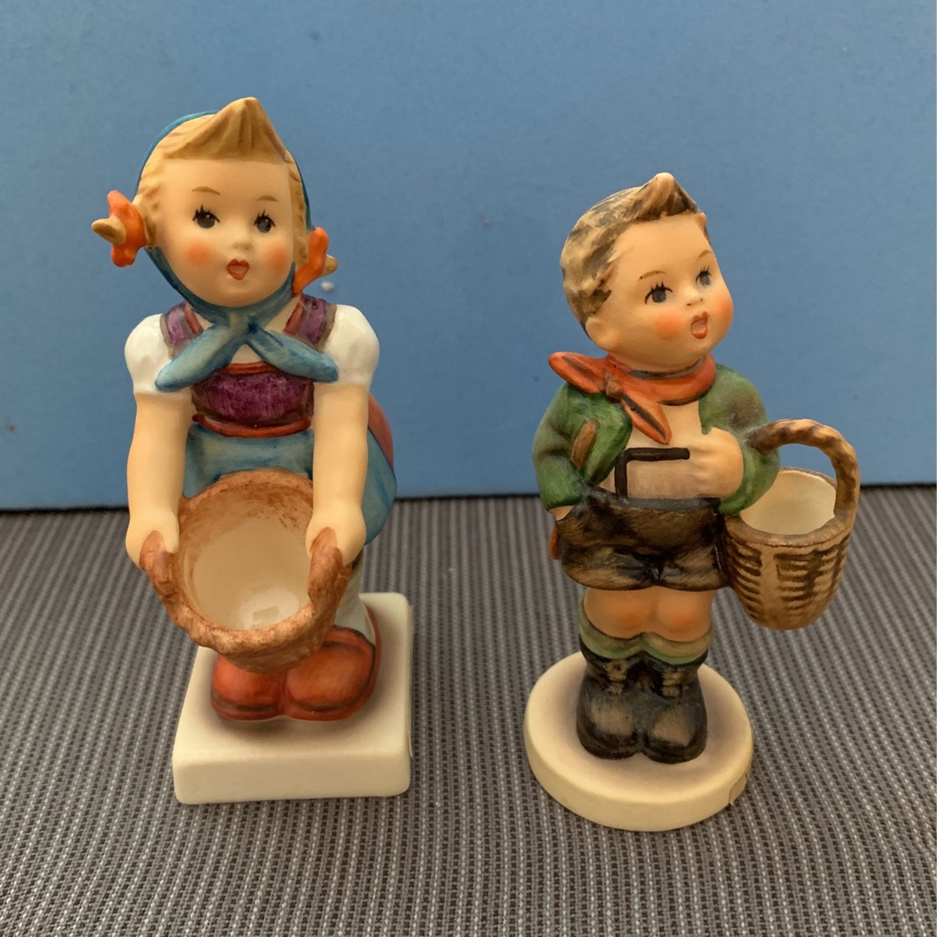 Girl figurine is entitled Little Helper. Approximately 4 1/2 inches tall. Boy figurine is entitled Village boy. Approximately 4 inches tall.. I am in the Bethany area
