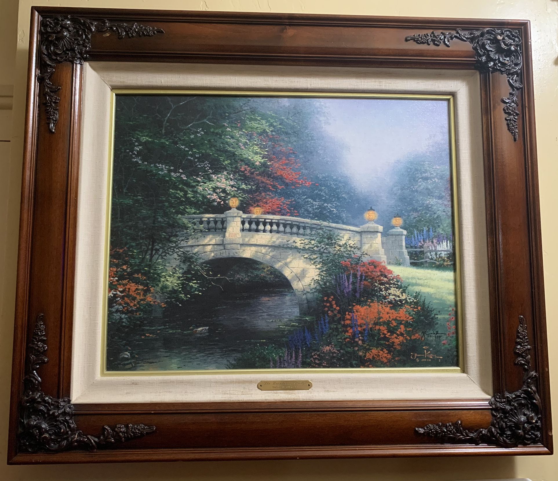 Thomas Kinkade The Broadwater Bridge, Thomashire 16x20 S/N Canvas Double Signed 16" x 20" FRAMED LIMITED EDITION CANVAS Signed and Numbered Limited Edition Includes Certificate of Authenticity and Brass Name Plate