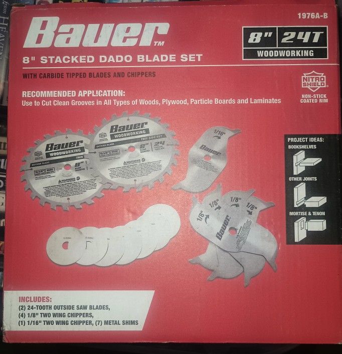 Brand new Includes: (2) 24-tooth outside saw blades (4) 1/8" two wing chippers (1)1/16" two wing chipper & (7) Metal shims ................. $50....................
