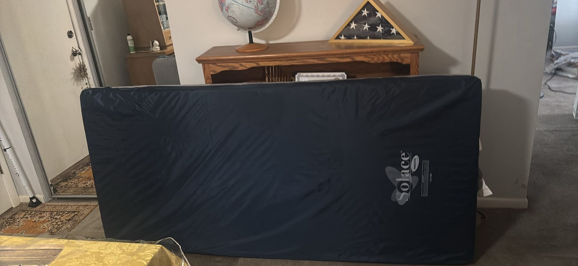 Twin XL electric hospital bed on wheels. Heavy duty motor, remote control and an all metal frame. Comes with a clean like-new mattress.