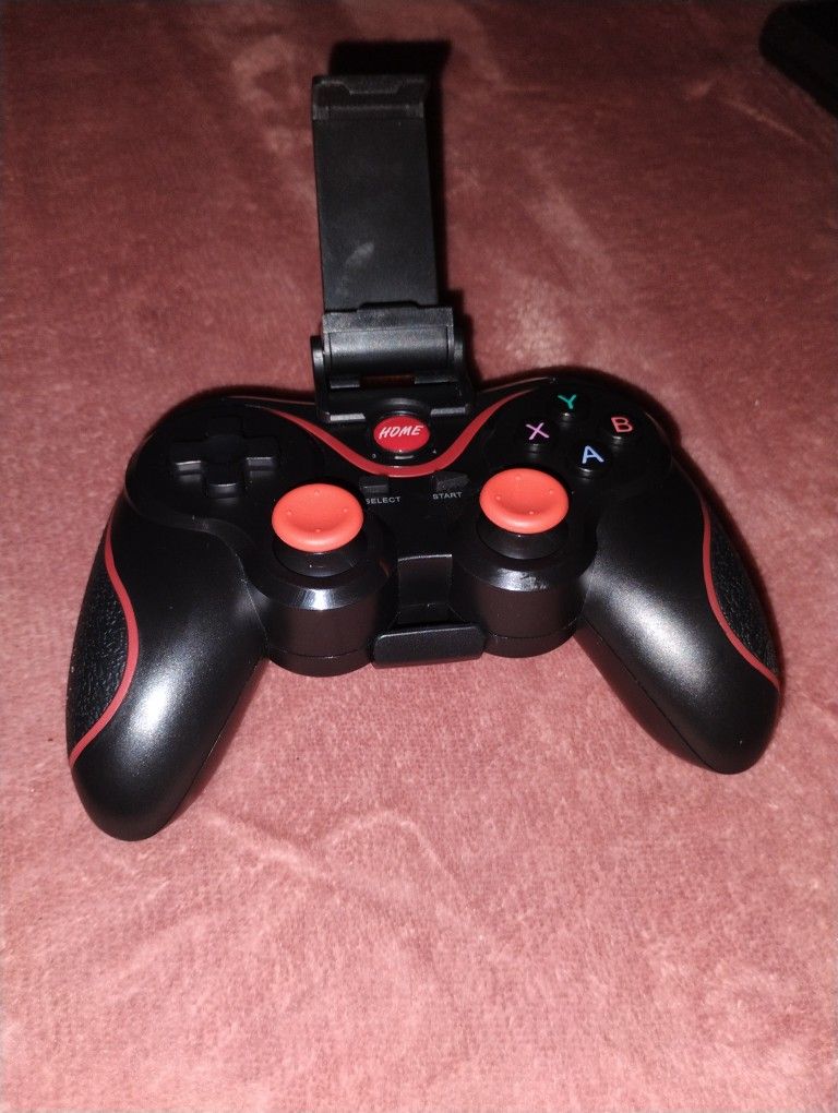 Black And Red Wireless Controller With Phone Holder For Phone