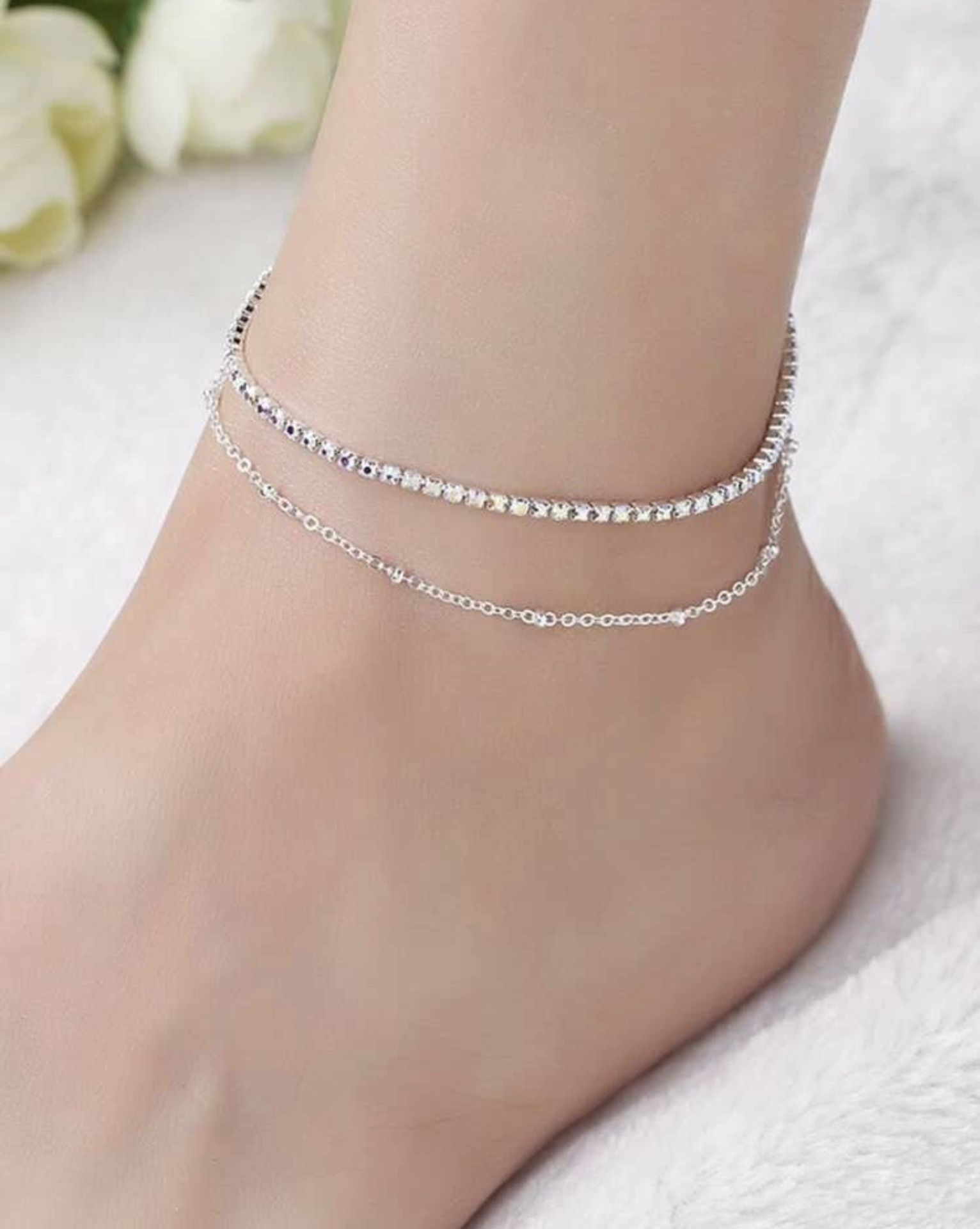 5 LEFT Gorgeous NEW Bedazzled Shiny Rhinestone Layered Womenโs Fashion Anklet