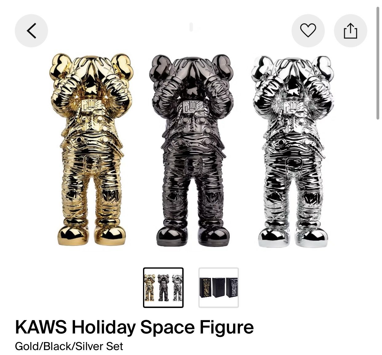 KAWS Holiday Space Figure Gold/Black/Silver Set