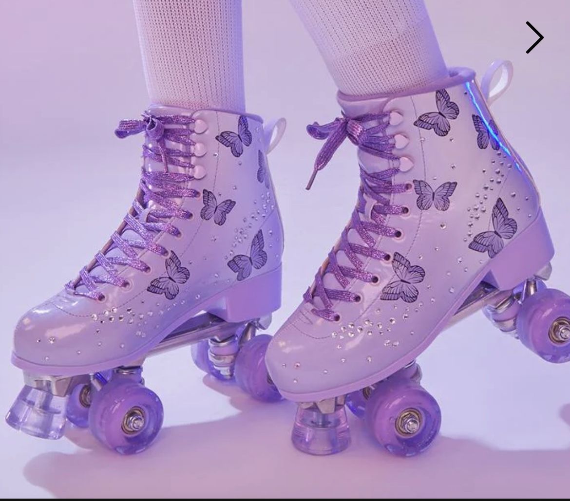 Super cute purple butterfly roller skates with gem stones and light up wheels. Size 9 in women’s Used only a few times, no real wear or tear.