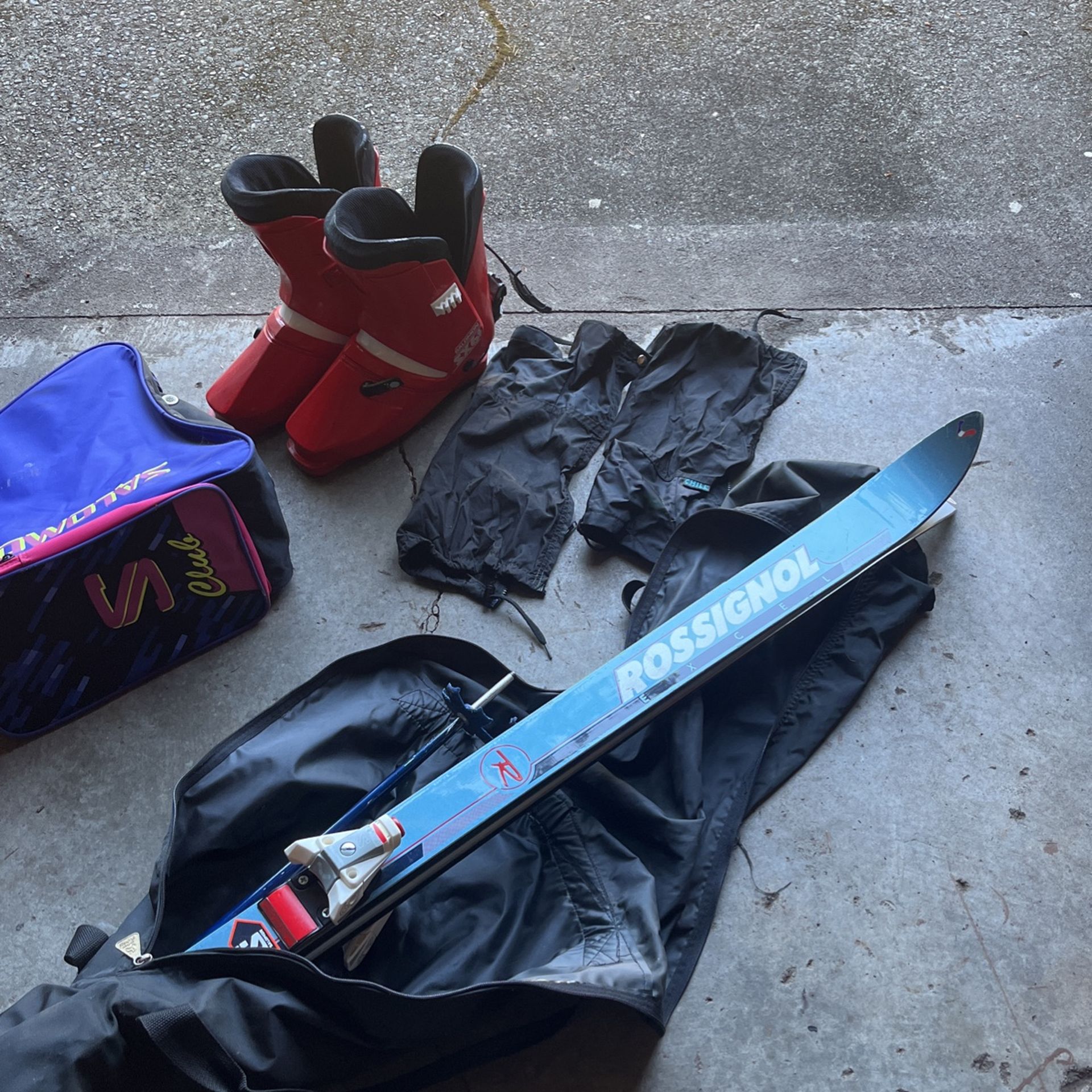 Brand: Rossignol (180’s) Salomon boots and bindings; ladies size 9 (I believe) One pair gators Carrying bags Seldom used, plenty of life left in them Knee issues prevent me from skiing again No deliveries or shipping Cash only No need to ask me if still available, is post is up it’s still available