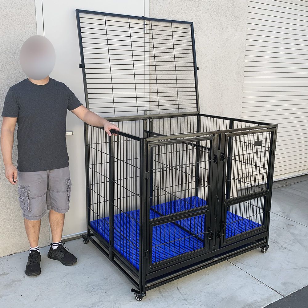 New in Box $280 Large 49” Heavy-Duty Folding Dog Crate 49x38x43” Double-Door Cage Kennel w/ Divider