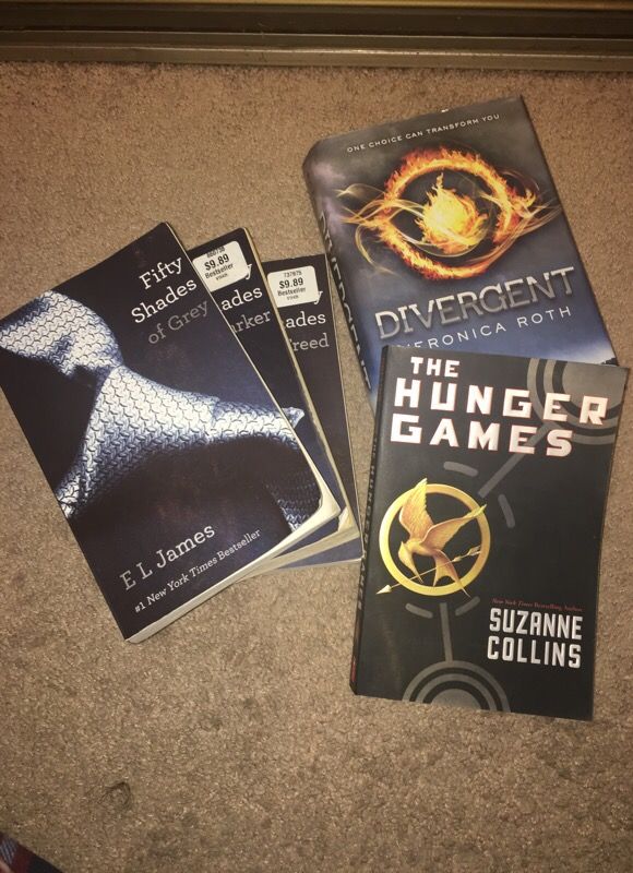 All 3 books of Fifty Shades of Grey series, The Hunger Games, and Divergent! All good reads, 50+ dollar value.