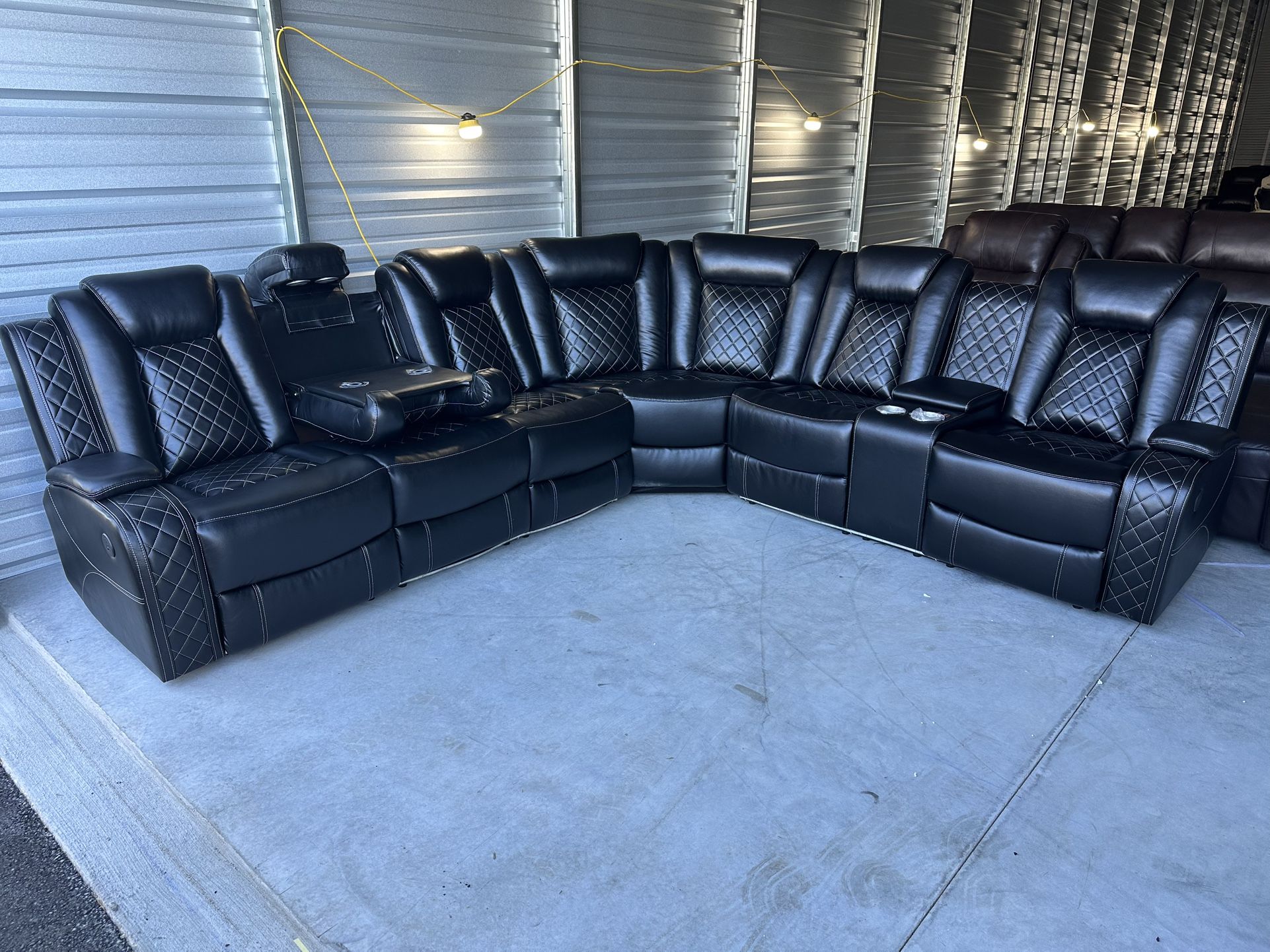 Brand New Black Power Reclining Sectional Sofa Couch