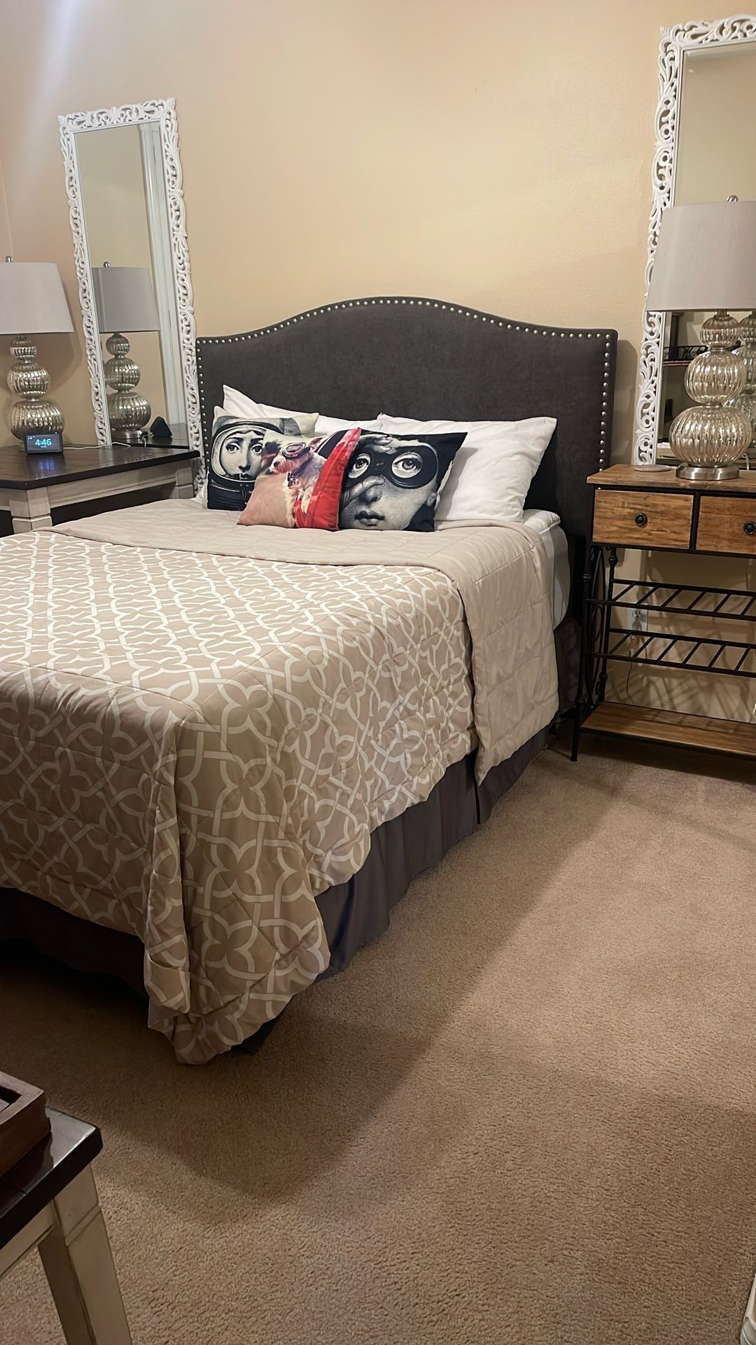 Queen Bed - 100.00 Head Board, Frame Box Spring And Mattress