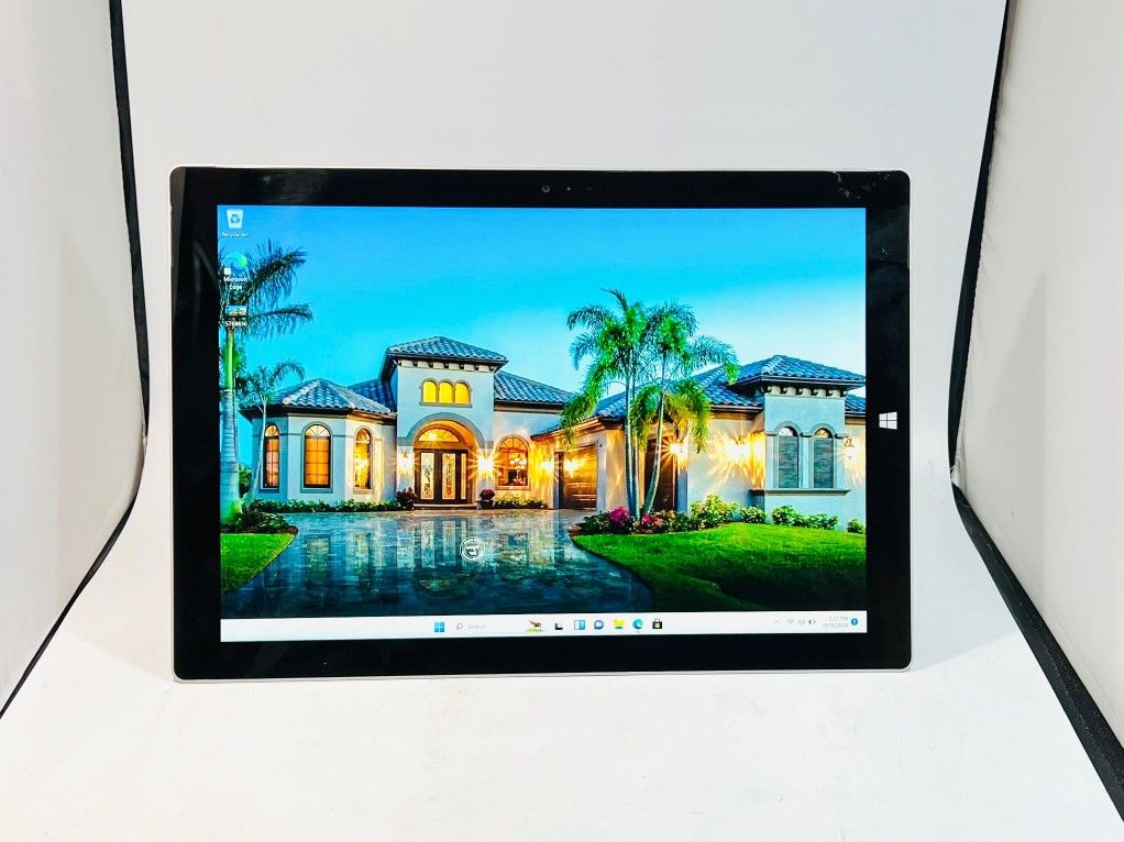 Hello, I am selling Microsoft Surface Pro 3, Touchscreen, Windows 11 Pro Tablet//Laptop. I factory reset it so it's like new and all accounts and data is removed. It is fully functional you can come and test it out no issues. It will come with the charger. KEY FEATURES: This is perfect for: -School -Work -Students -Zoom -Travelling -Internet Browsing. SPECS: -Windows 11 Pro -1.90GHZ Intel Core i5-4300U Processor -4 GB Ram -120 GB SSD -Microsoft Basic Display Adapter -2160 x 1440 Resolution -WiFi// Bluetooth//Front Camera//Microphone PORTS: Display Port// USB Port//SD Card Slot// Headphone Port. If you have any questions. Please contact me. Thank you
