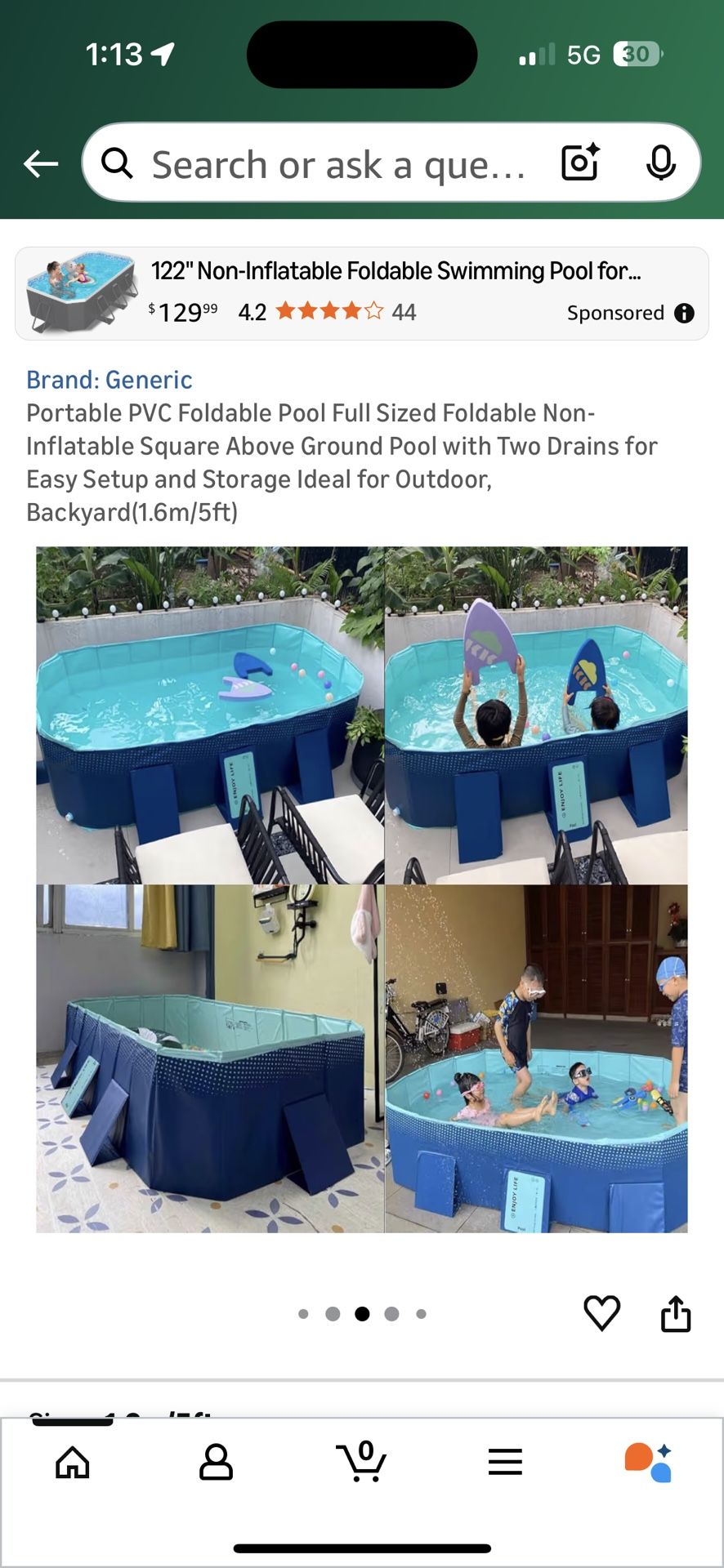 Portable PVC Foldable Pool Full Sized Foldable Non-Inflatable Square Above Ground Pool with Two Drains for Easy Setup and Storage Ideal for Outdoor, Backyard(1.6m/5ft) New open box.