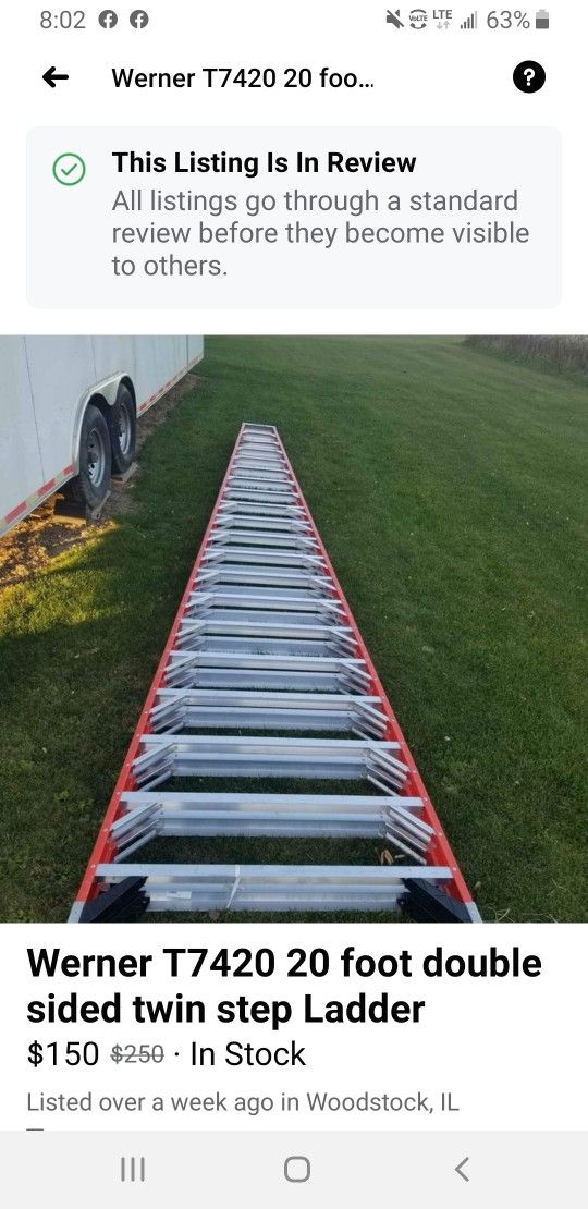 Werner model T7420 it's a 20' double sided step ladder pick up in Woodstock Illinois