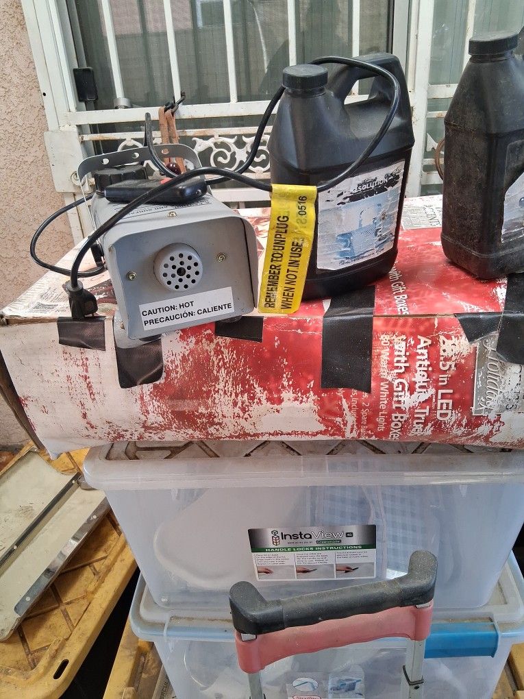 The fog machine since it been sitting its turn on but won't sent the fog out with 2 bottles of solutio. One is full an the other is half