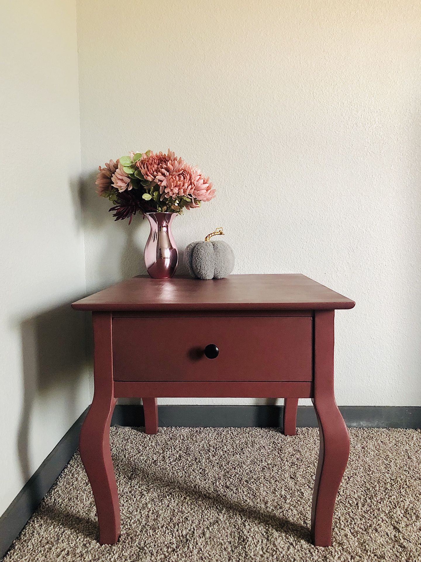 Matte mauve table with single dresser Pick up on S. Cooper Rd. & E. Pecos FREE DELIVERY Matte black drawer interior, real wood, lightweight but sturdy Can be used as a nightstand, end table, decor piece, or side table Measurements are 22” wide, 27” long, 21” tall Furniture will be disinfected before pick up Contactless delivery/ pickup available No holds
