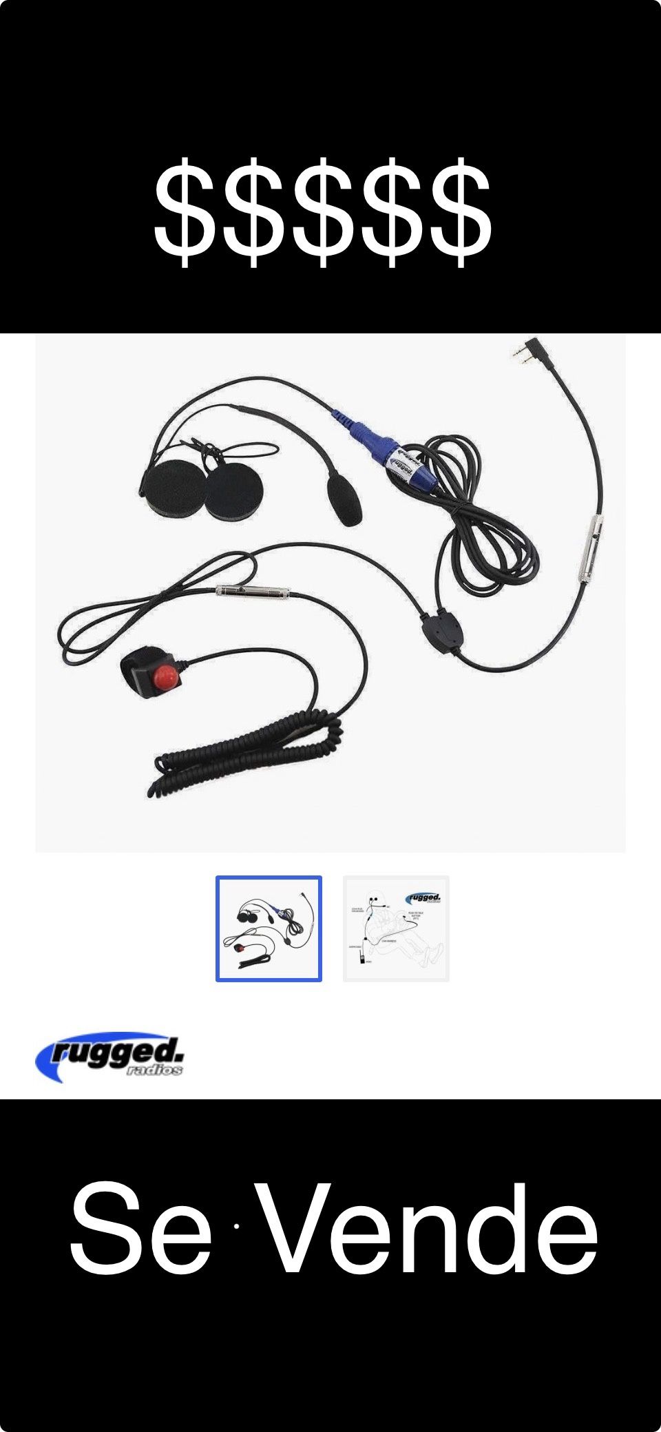 Rugged radio, single rider, kit, microphone and headphones are brand new never been installed in a helmet wire harness that goes connected to the radio has been used, but in working condition conditions I have two price is for one but if you buy both will give a better deal