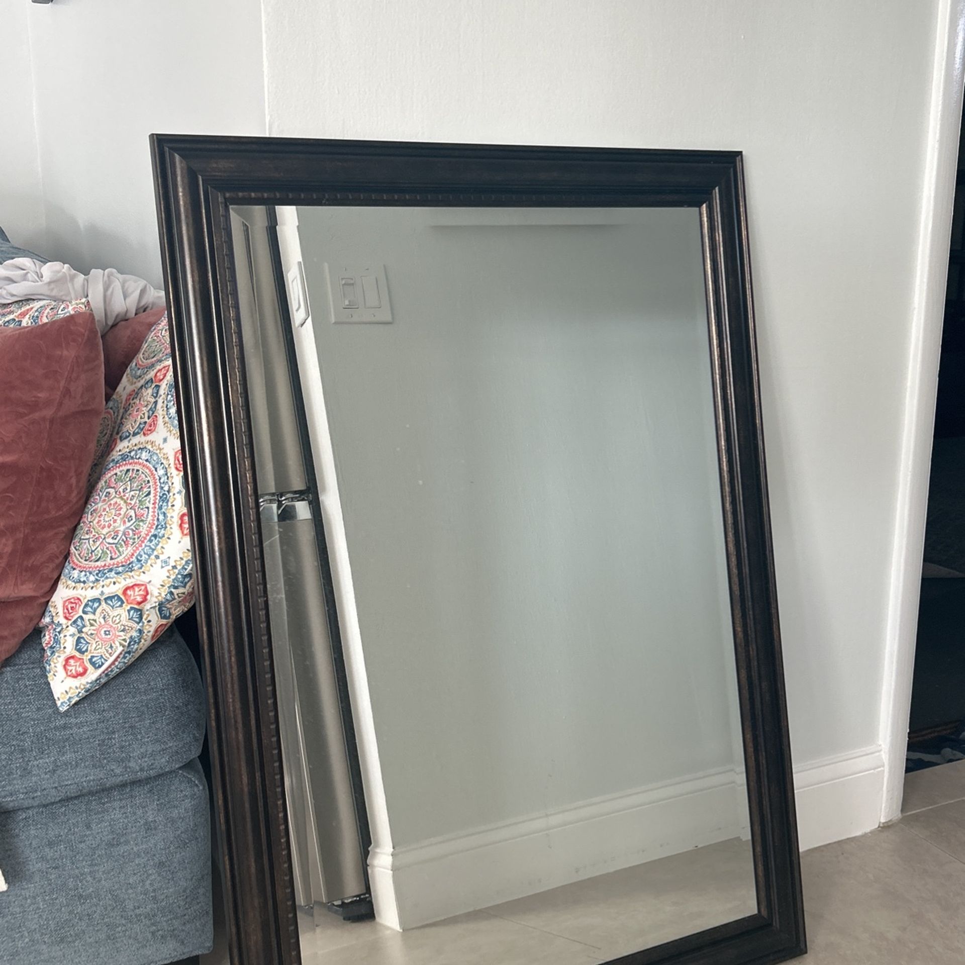 This is a lightly used mirror that was purchased from Kirkland It has a wooden frame, And stands 24x36 inches. Located near 33411, West Palm