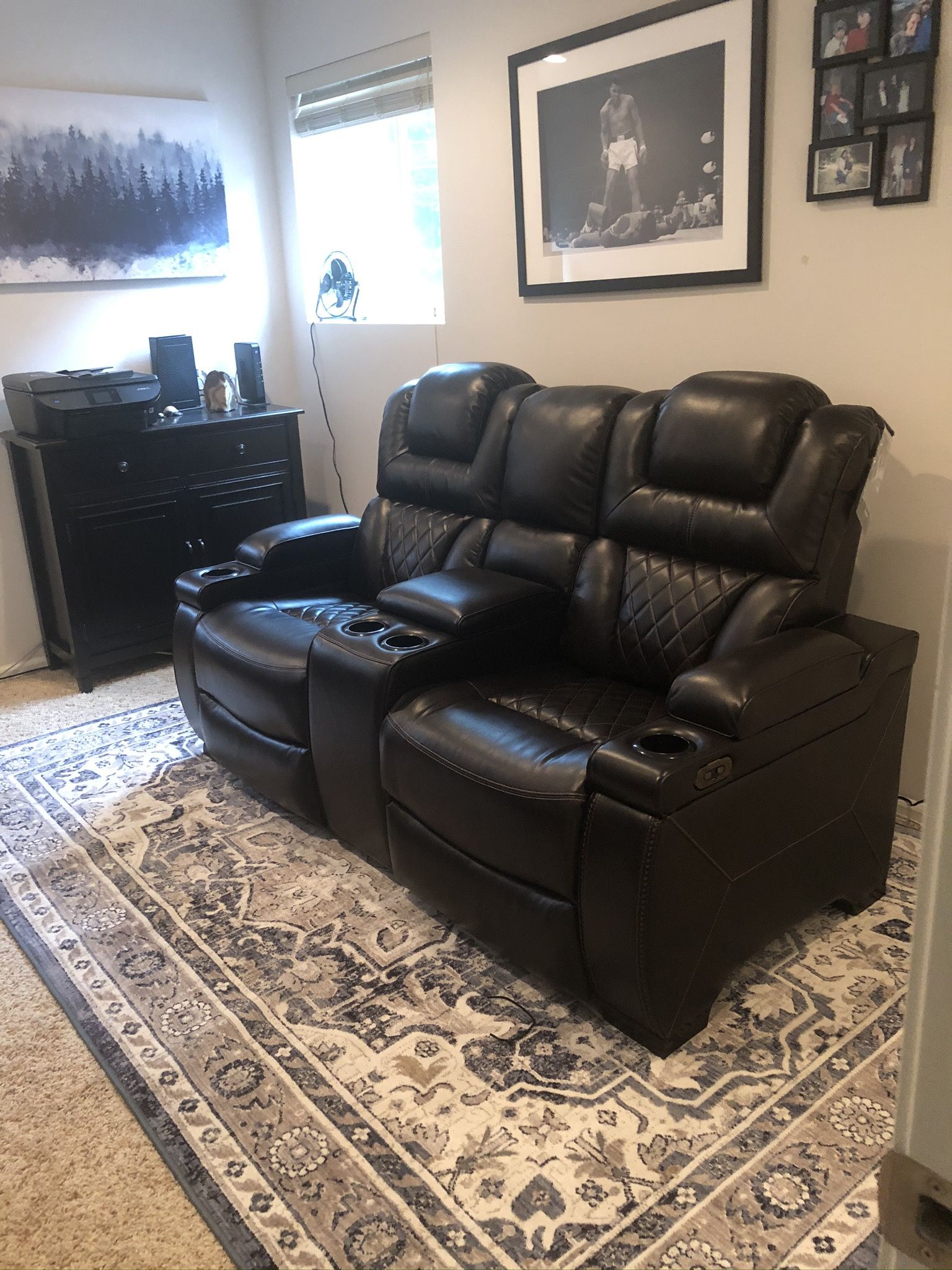 (contact info removed) Ashley Furniture Warnerton Power Recliner Loveseat With Power Adjustable Headrests FEATURES Reclining, Power Reclining, USB Charging Port, Storage, Power Headrest, Cup Holders Power Recliner love seat like new, barely used. Beautiful and practical recliner but just looking to get something smaller as we’re remodeling the room. Was over $2k new. Very heavy but can be disassembled for transportation. Must be able to pick up and carry out. Dual-sided recliner One-touch power controls with adjustable positions Corner-blocked frame with metal reinforced seat Attached cushions High-resiliency foam cushions wrapped in thick poly fiber Easy View™ power adjustable headrests Armrests with flip-top storage and cup holder Center storage console with 2 cup holders USB charging port in power control Polyester/polyurethane upholstery Power cord included; UL Listed OVERALL DIMENSIONS Overall Width 72.00" Overall Depth 40.00" Overall Height 44.75" Seat Width 23.00" Seat Depth 21.25" Seat Height 20.00" Arm Height 26.50"