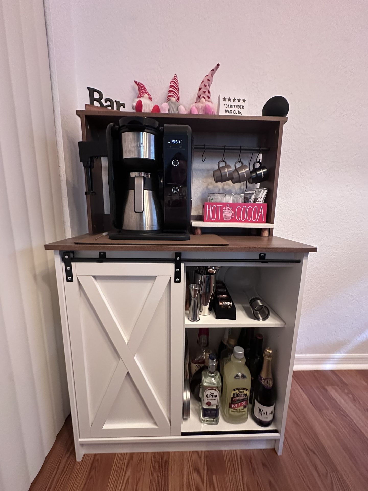 COFFEE BAR FOR SALE ONLY. Items on it not included. Perfect condition. Measurements are listed in pictures.