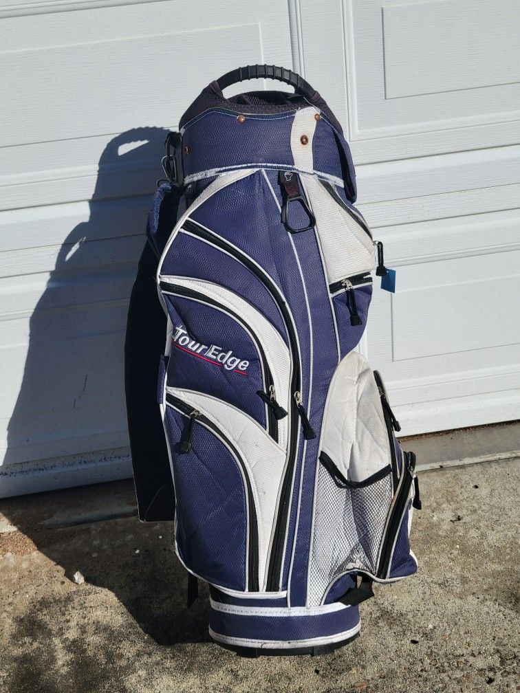 Carry or cart bag 13 divided sections for clubs Cooler pocket Several zippered pockets Zippers work Nice condition. NOT A STAND BAG North Park ALSO AVAILABLE Men's AND Women's Golf bags Men's sets TaylorMade Drivers Assorted putters and wedges PULL CARTS North Park PRICE FIRM, OFFERS IGNORED