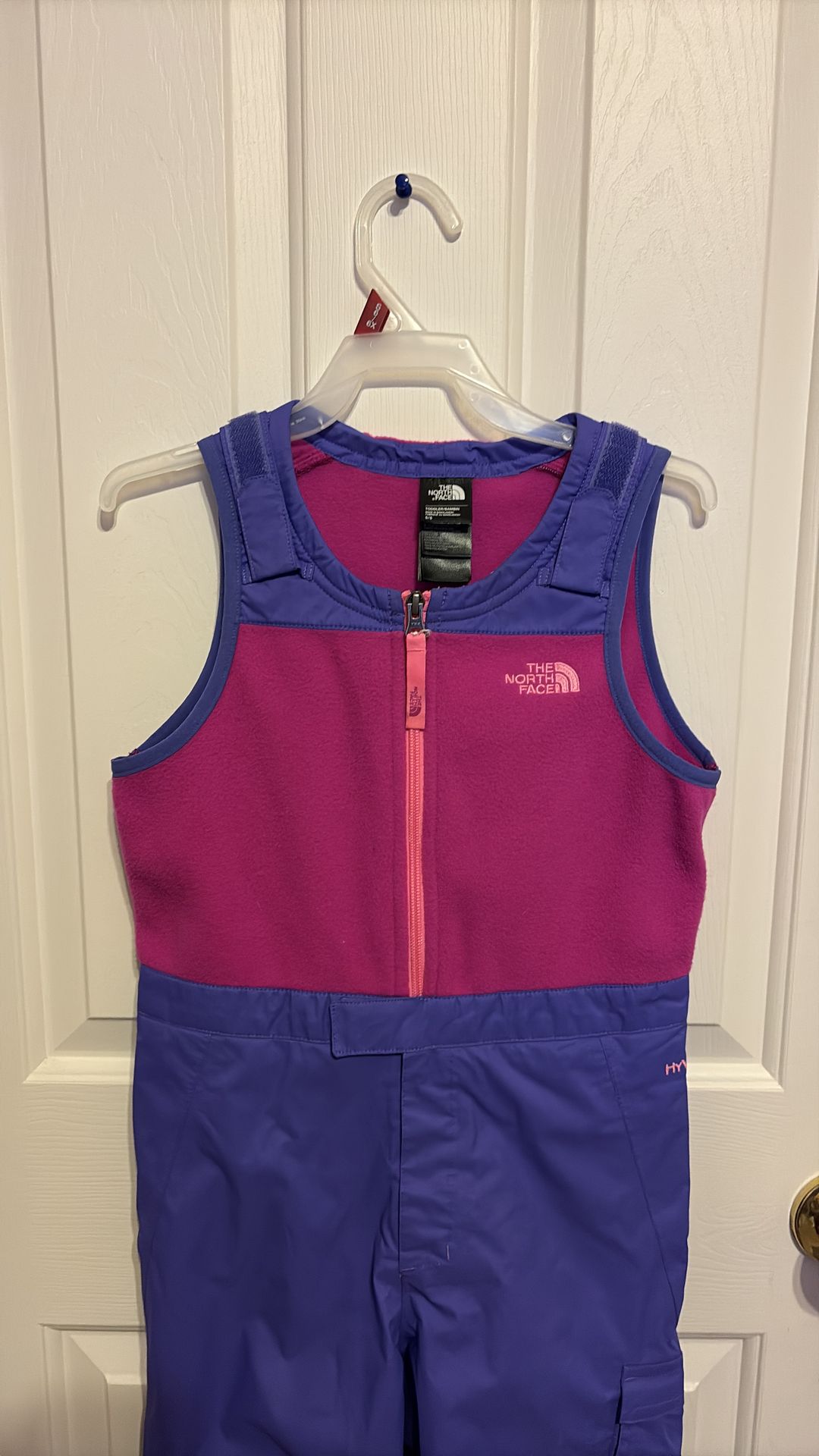 Pink and purple north face snow jumpsuit Size 5