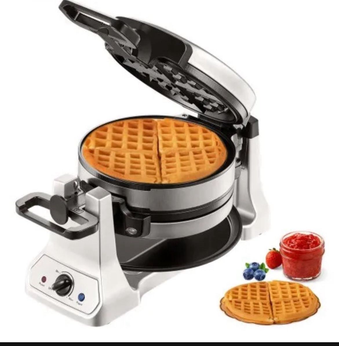 VEVOR 2-Layer Waffle Maker, 2 Pieces per Batch, 1400W Round Waffle Iron, Non-Stick Waffle Baker Machine with 122-572℉ / 50-300℃ Temp Range Teflon-Coat