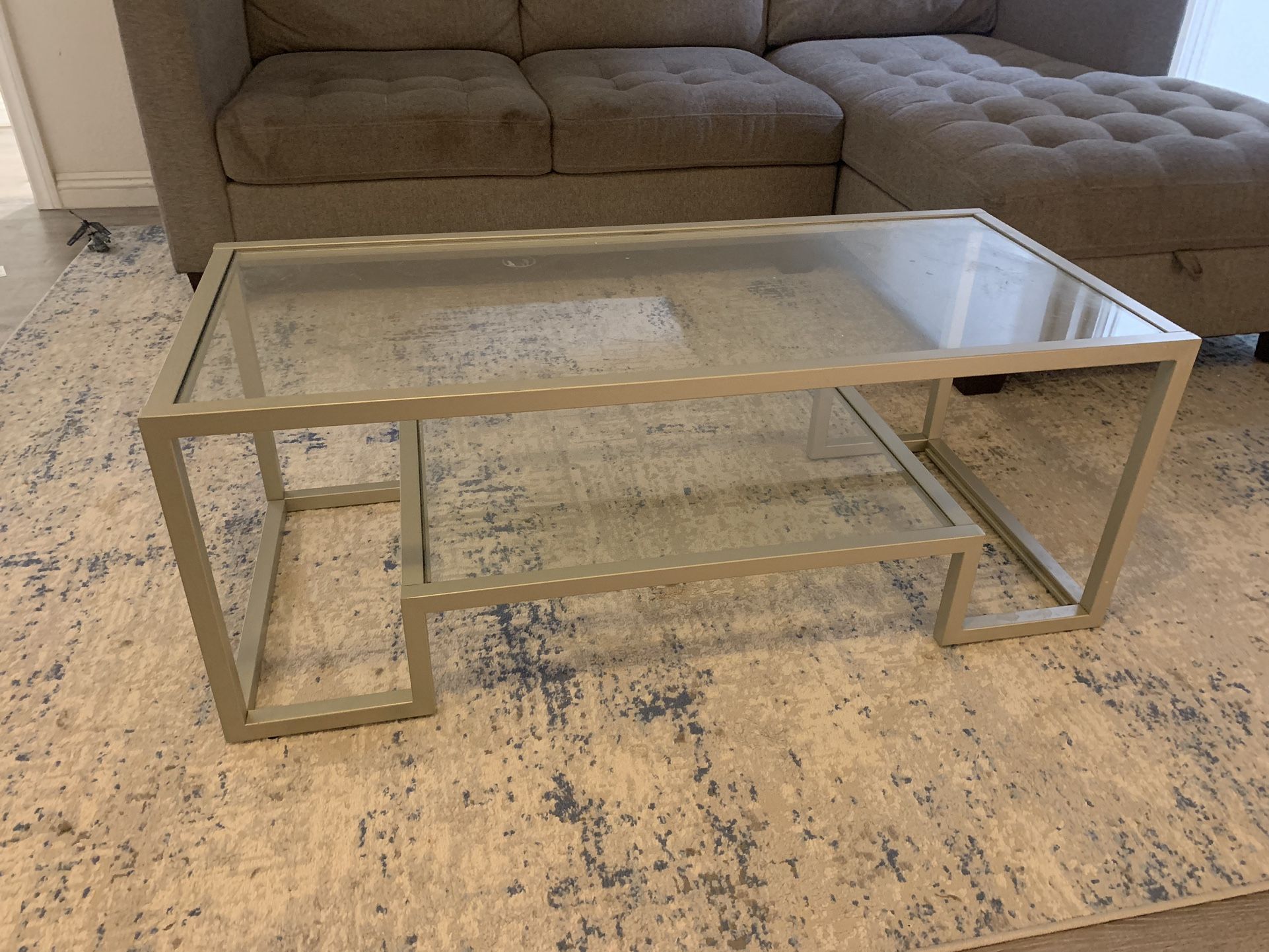 Henn&Hart 45" Wide Rectangular Coffee Table in Satin Nickel, Modern coffee tables for living room, studio apartment essentials Still in good condition