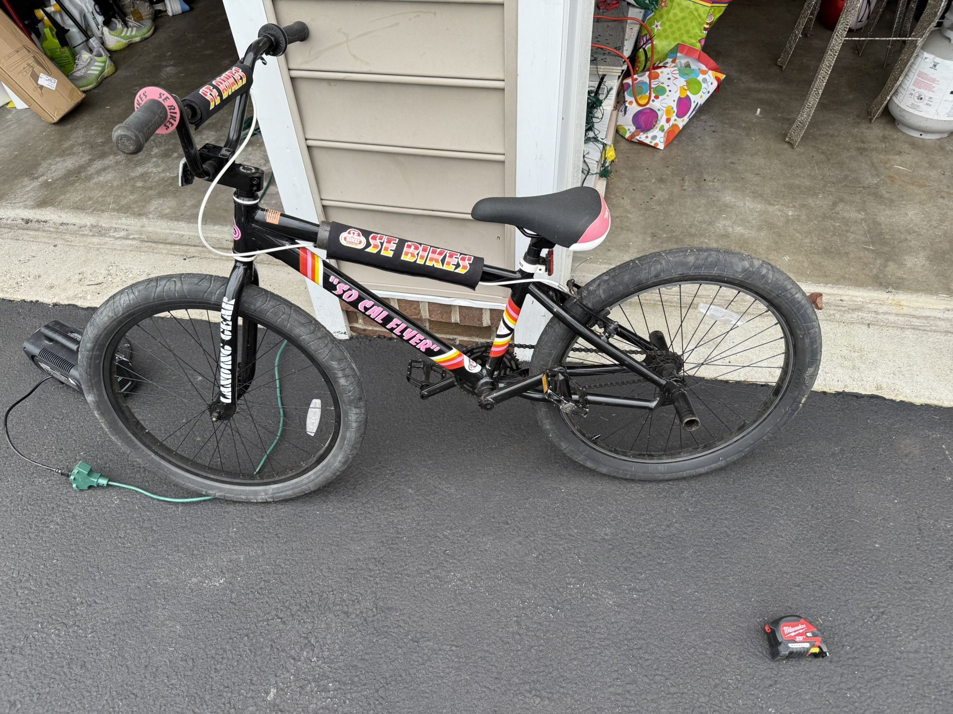 Used SE So Cal Flyer bike Black and Pink. Newer fat tires installed. 20” So Cal Flyer bike.