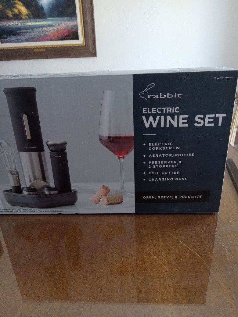 Rabbit Electric Set for wine Electric corkscrew, aerator pourer, preserver 2 stoppers, foil cutter and charging base