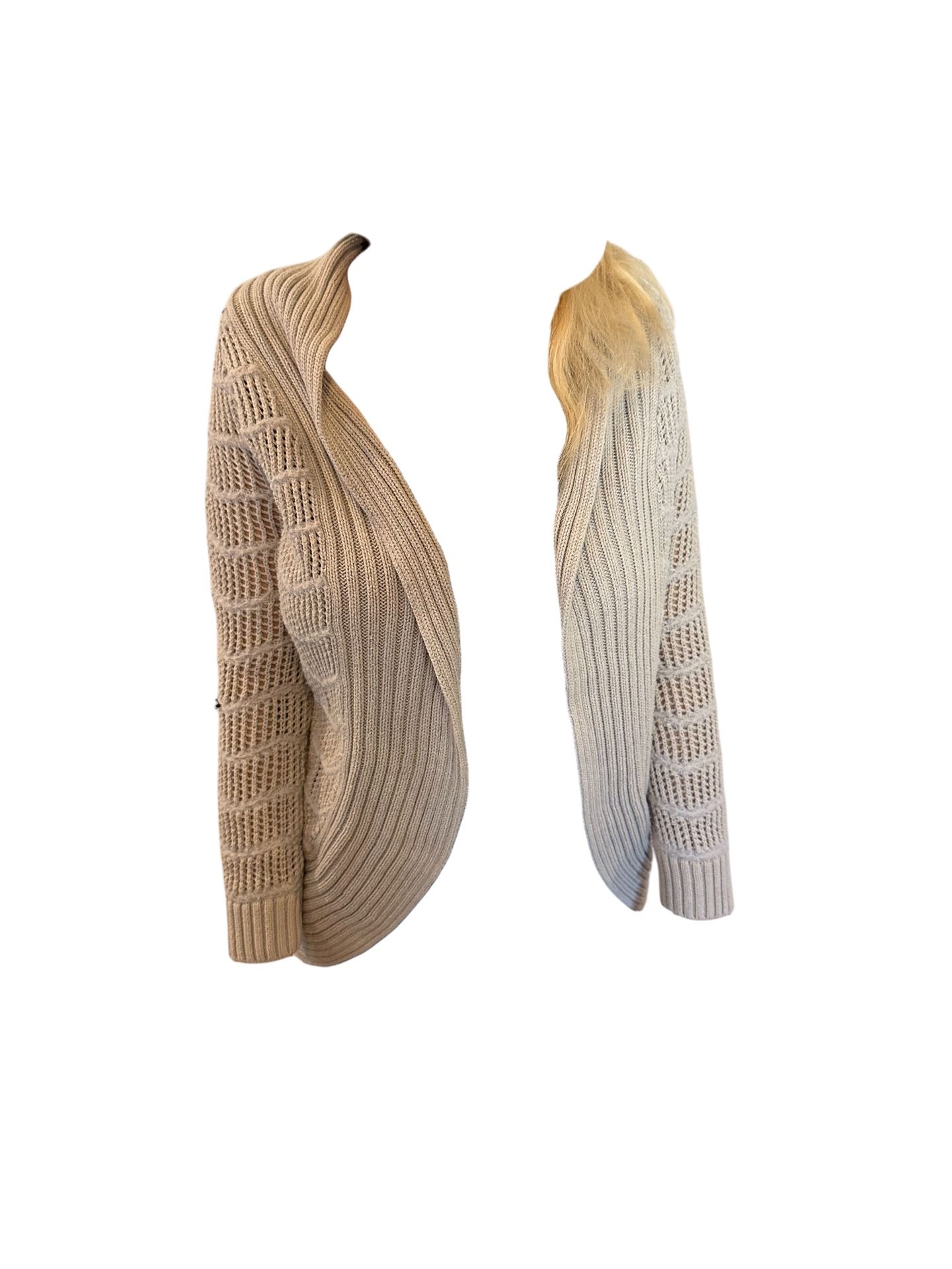 Upgrade your layering game with this beautiful open-knit waterfall cardigan. Designed with a soft, breathable knit, this piece drapes effortlessly for a flattering, easygoing fit. The wave-patterned mesh gives it a light, airy feel—perfect for year-round wear. Features: Lightweight open-knit design – breathable and ideal for layering Waterfall front – soft drape that flatters any outfit Wave-pattern texture – adds dimension without bulk Long sleeves with ribbed cuffs for a comfortable, flexible fit Neutral aqua tone – pairs effortlessly with denim, dresses, or office wear Condition: Gently used, no flaws. Fit: Relaxed and cozy, perfect for casual days, office layering, or cool evenings. A great staple piece for anyone who loves effortless style with a touch of texture!