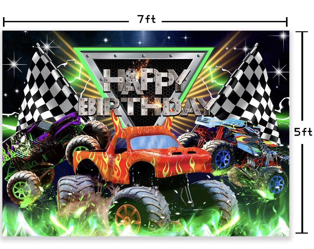 Monster jam / monster trucks comes with 3 pack balloons and back drop