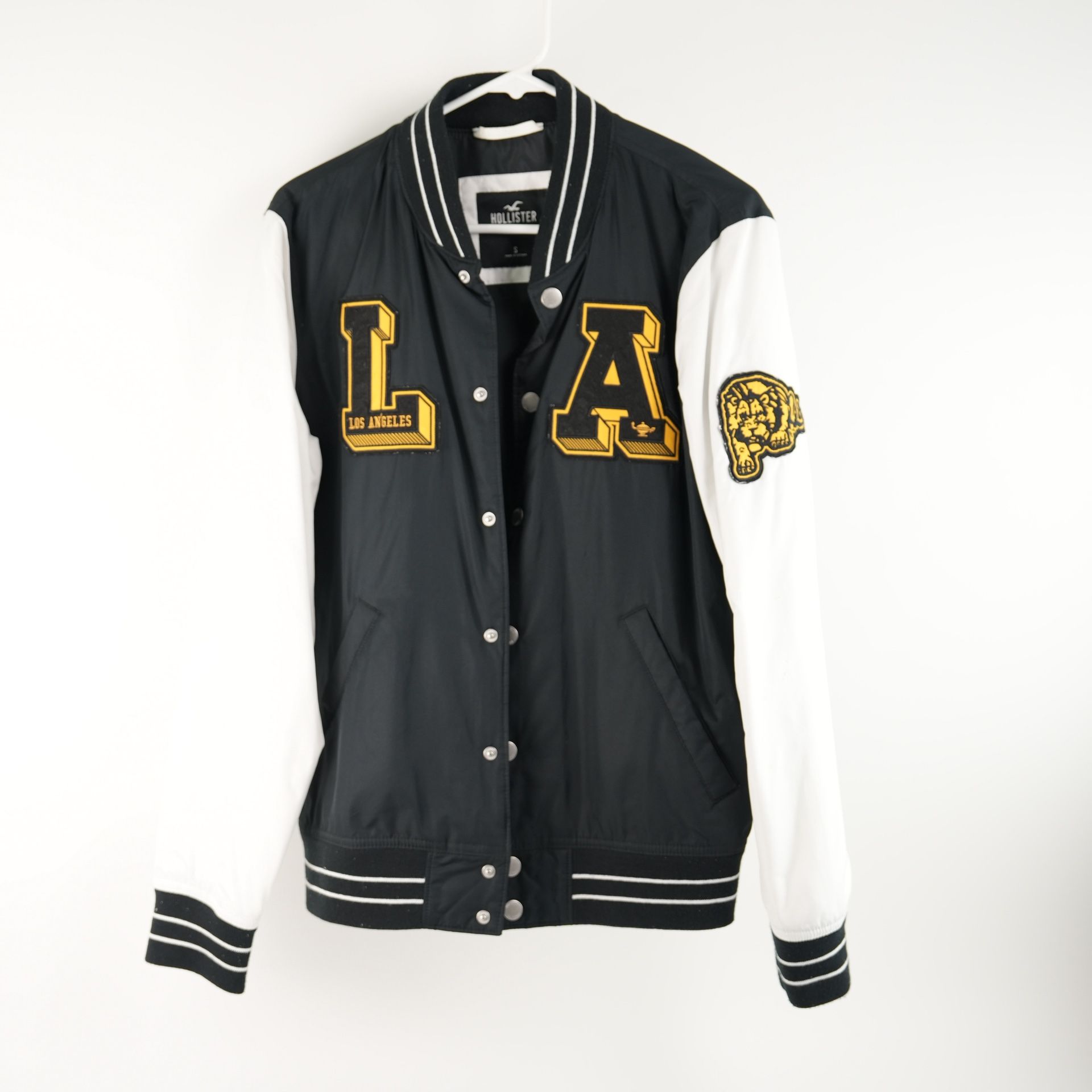 Condition: Used Size S no tag Warranty: No warranty is provided by the seller. Manufacturer warranty may or may not still be valid; this cannot be guaranteed. Brand: Hollister Model/Style: Varsity / Letterman Jacket Material: 100% Polyester Color: Black & White Size: Small Closure: Snap Button Pockets: Two front pockets Made In: Vietnam Features: LA letter patches, ribbed trim, varsity style Perfect for: Casual wear, streetwear, everyday layering